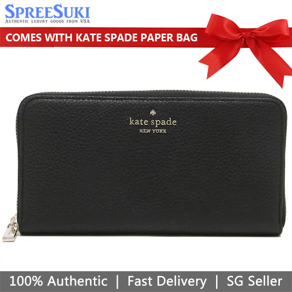 Kate Spade Wallet In Gift Box Long Wallet Large Continental Wallet Pebbled Leather Black # WLR00392