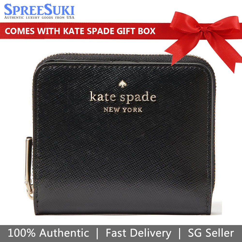 Kate Spade Wallet In Gift Box Medium Wallet Natalia Medium Compact Bifold Wallet Black # WLRU6344