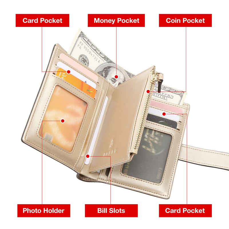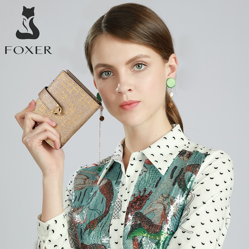 Foxer Lady Fashion Money Wallet Women Chic Small Coin Pocket Female Luxury Split Leather Money Purse Shine Multi-function Wallet