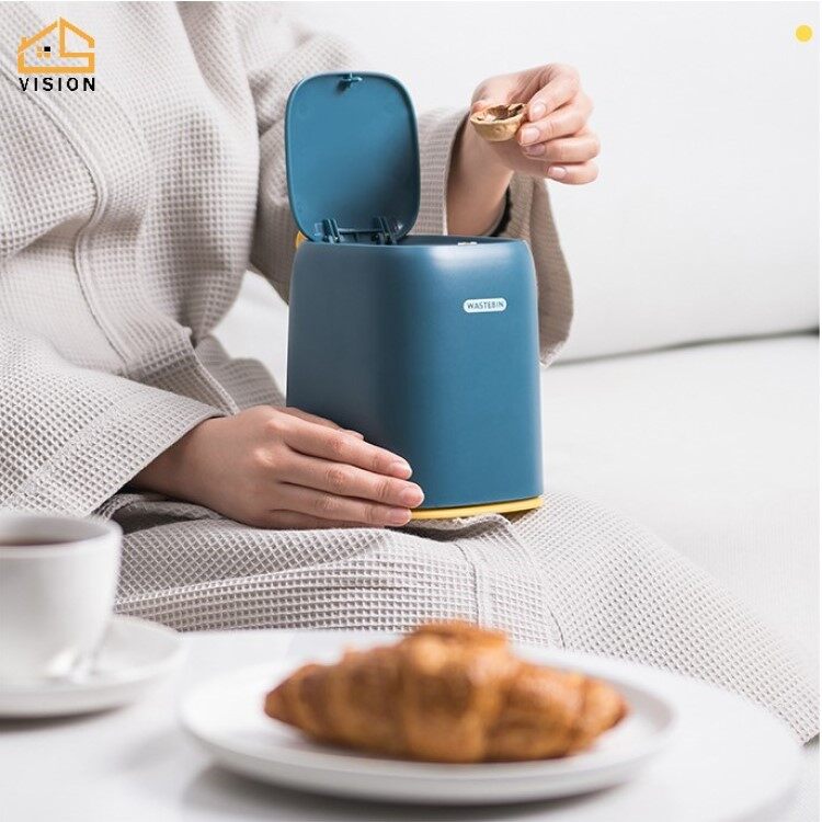 [Delivery in 3 Days]Vision Desk Mini Trash Bin Press Type Dustbin Office Dressing Table Living Room household Mini Storage Box Table Top Trash Can With Cover