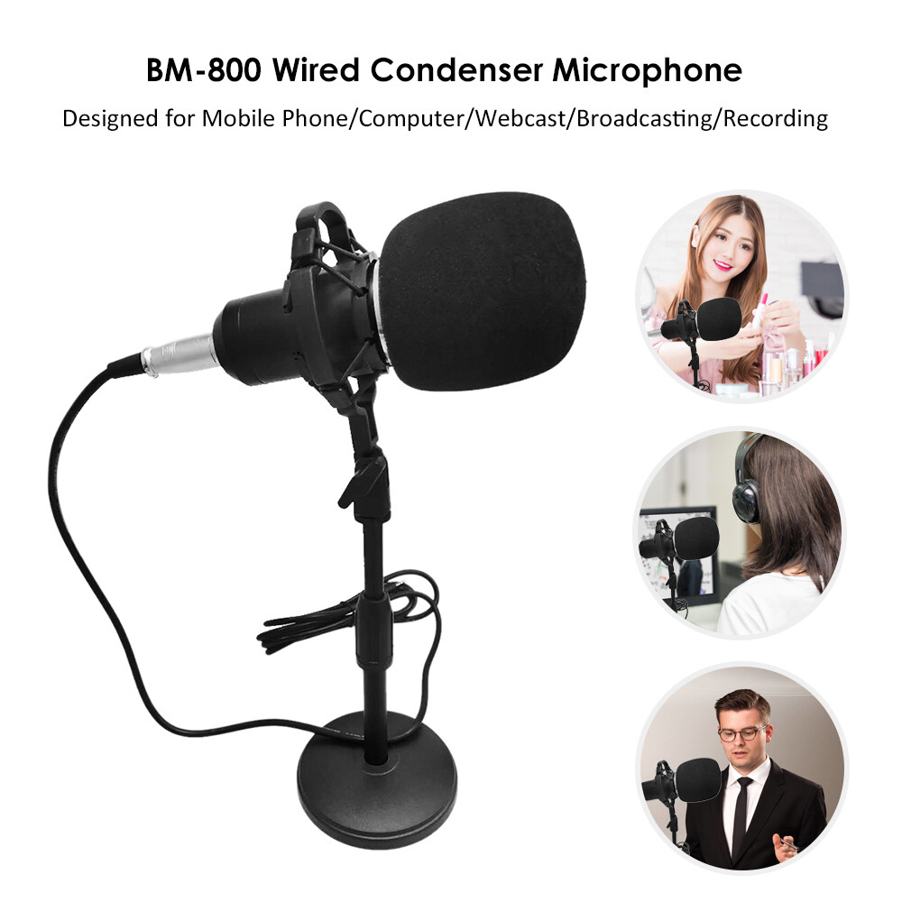 dodocool [Hot]BM-800 Condenser Microphone Portable High Sensitivity Low Noise Mic Kit for Computer Mobile Phone Studio Live- Stream Broadcasting Recording with Round Disk Support