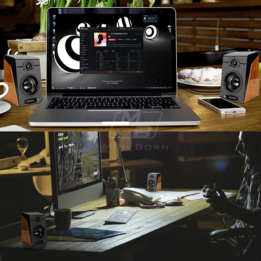 Mini Born 2PCS Soundbar Desktop Computer Speaker TV Super Bass Subwoofer 3.5mm Wired Soundbox USB Powered Home Speakers Portable Speaker for Home Office