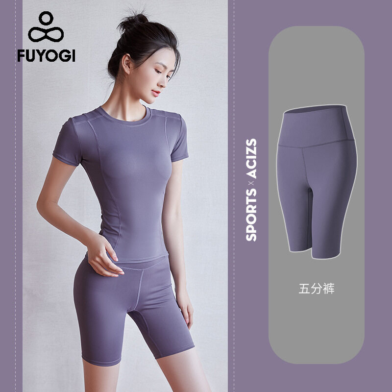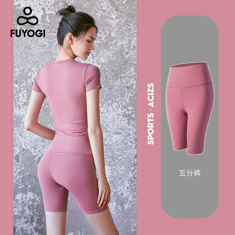 FUYOGI Yoga Shorts Women's High Waist Abdomen Hips Stretch Tights Control Short Leggings Best Workout Cotton Yoga Pants