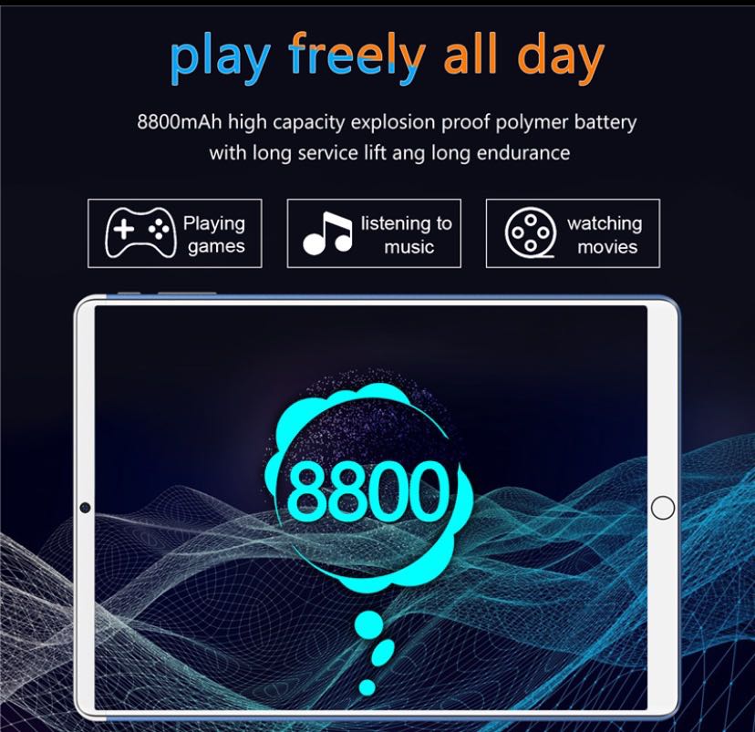【2022 TOP2】KEYPOON K80 Tablet PC 10.1 Inches Android 11 8800mAh Dual SIM 5G WiFi Gaming Online Classroom Meeting for Students 10GB RAM 128GB 256GB 512GB ROM