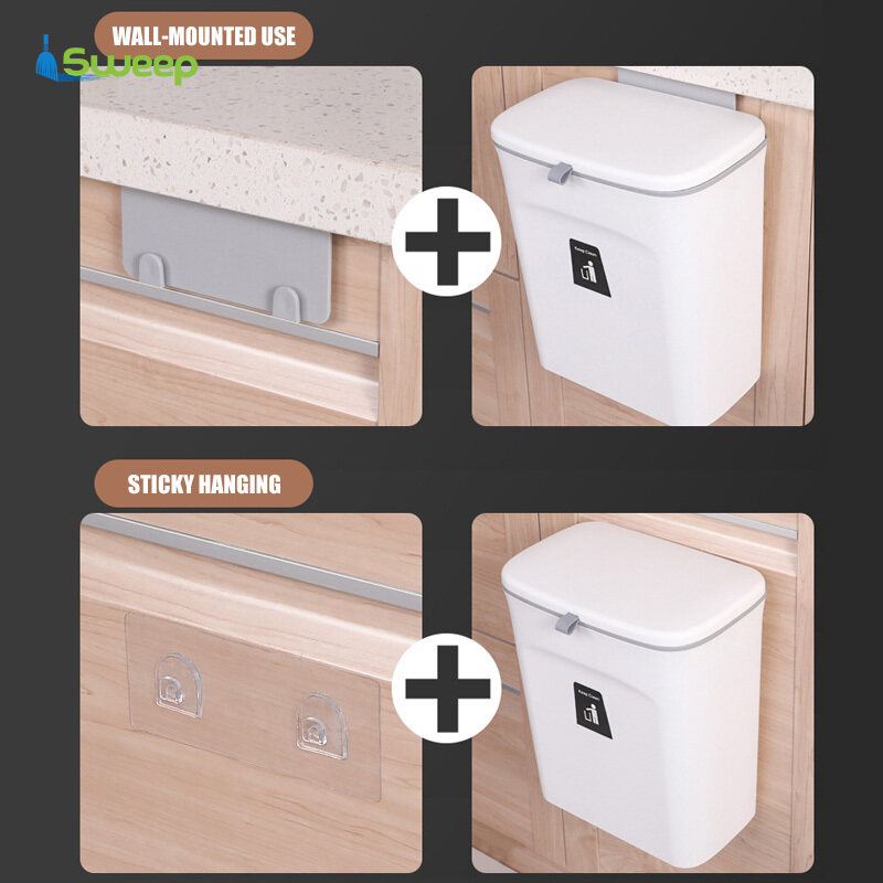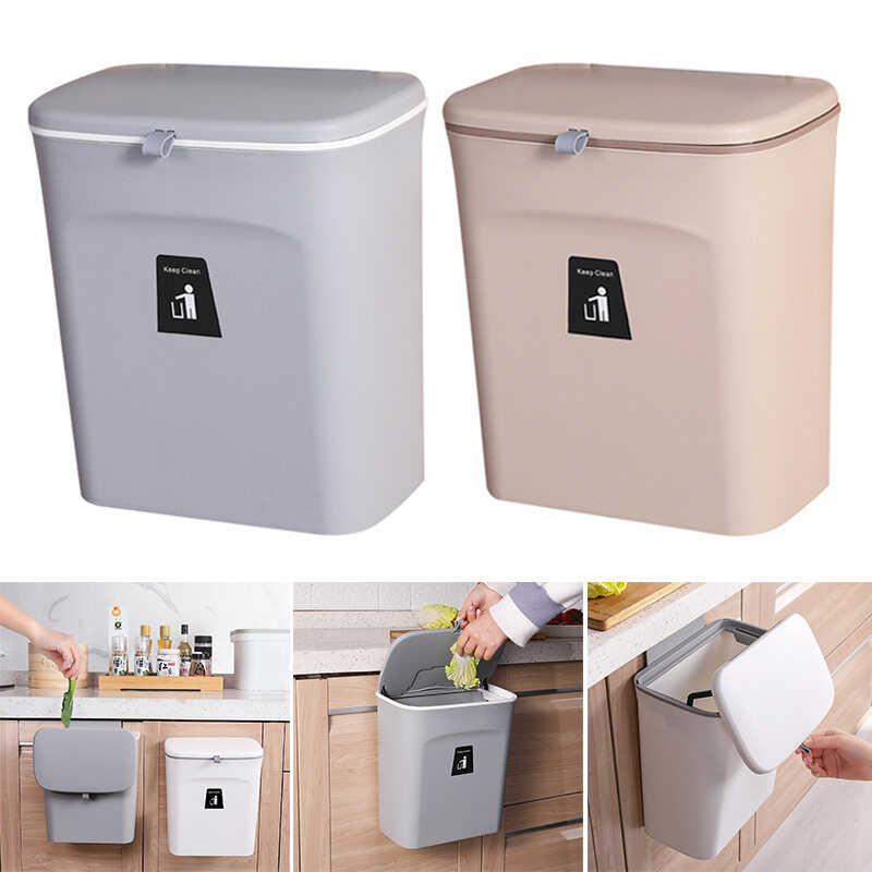【Ready Stock】Hanging Trash Can for Kitchen Cabinet Door with Lid Wall Mounted Counter Waste Bin Plastic
