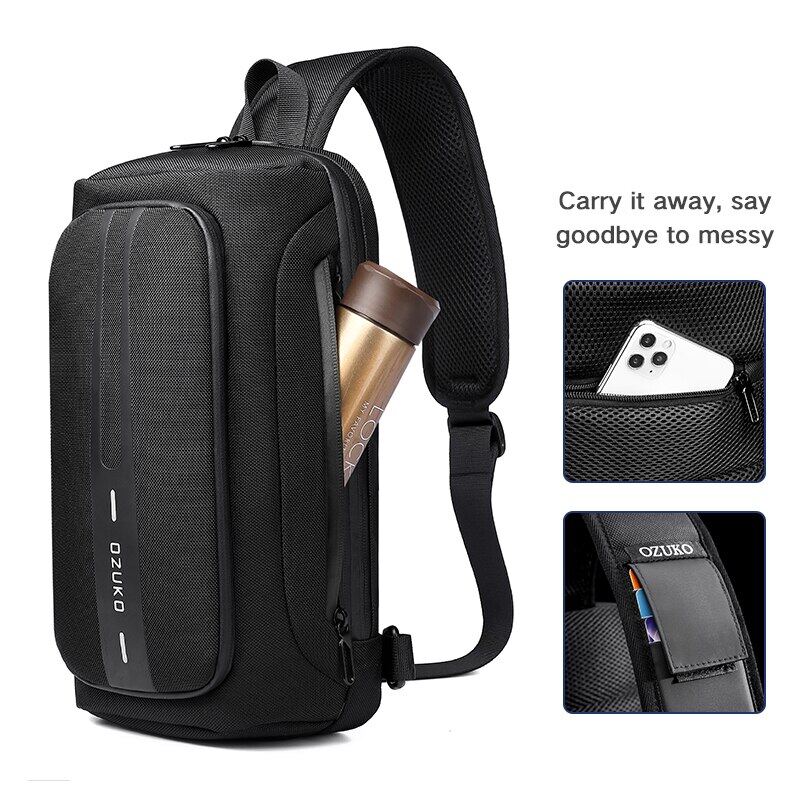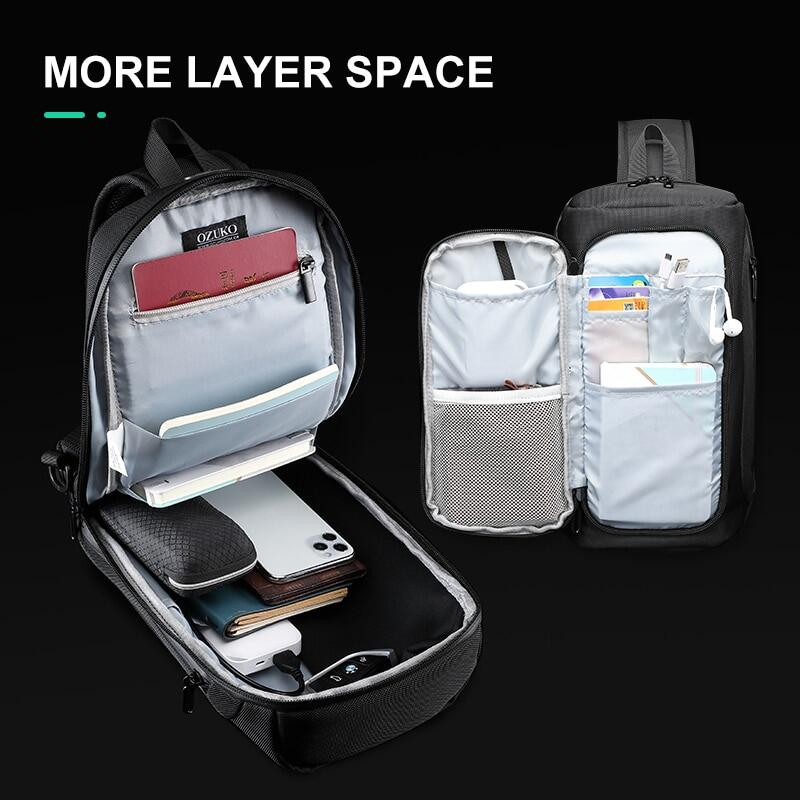 OZUKO New 2021 Multifunction Men Chest Bag Anti-theft Male Travel Sling Bags Waterproof Crossbody Messenger Bag