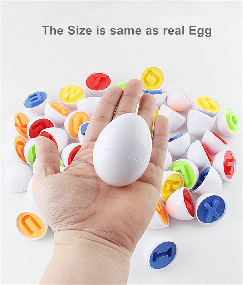 Multi-purpose Learning Tool: Alphabet letters matching egg is great to teach colors and shapes naturally, kids can take them all apart and match them all, name the alphabet, and tell the colors. Come in a container, stored away easily and neatly. Great way to teach your child clean up too! This is a great "grow into more activities" toy--not one that will be discarded in a month.