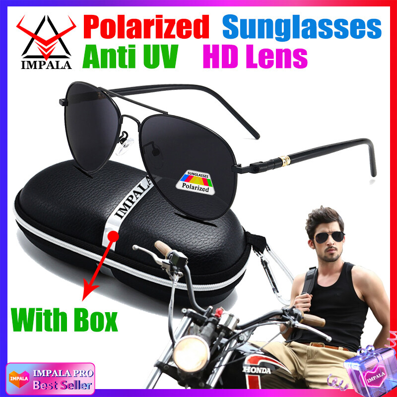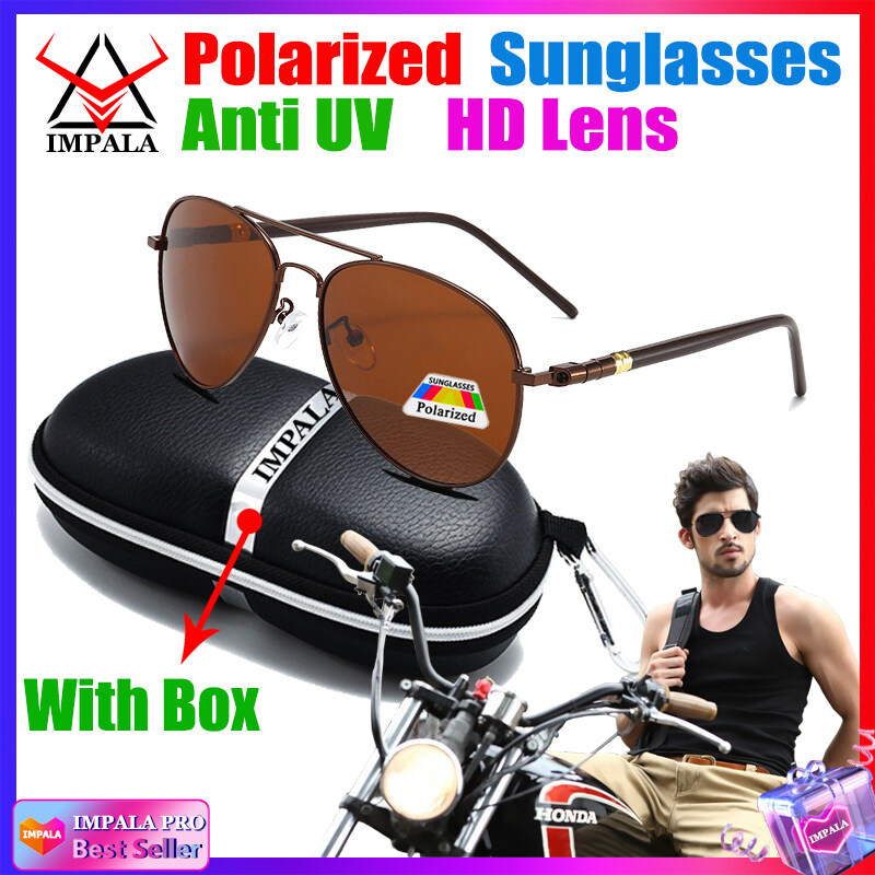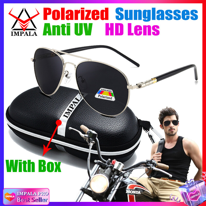 IMPALA PG1836L Fashion Men Polarized Photochromic Sunglasses Anti Glare UV400 HD Lens Metal Frame Driving Fishing Outdoor Soprts Glasses with case