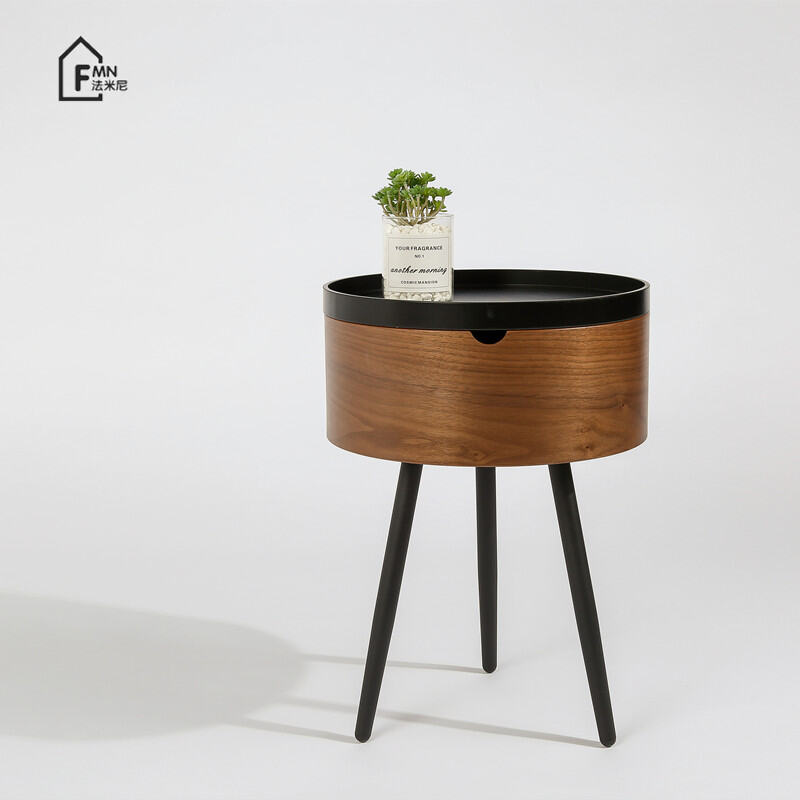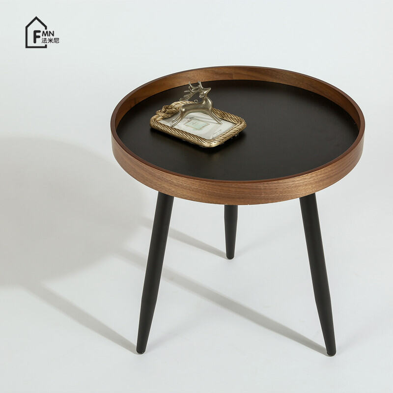 Italian Walnut round Combination Coffee Table Small Apartment Living Room Side Table Light Luxury Balcony Ins Style Nordic Simple