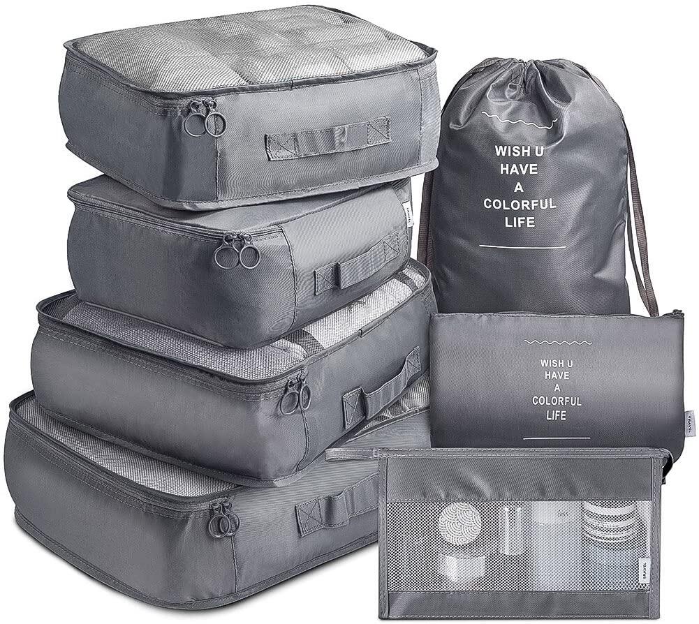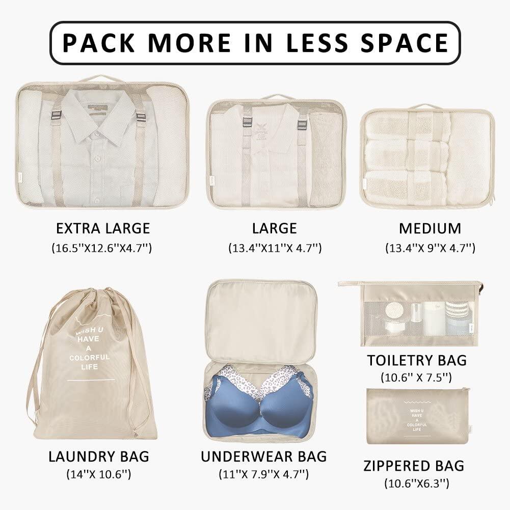 7 Pcs Travel Luggage Packing Organizers Set with Toiletry Bag, Clothing Classification Storage Bag
