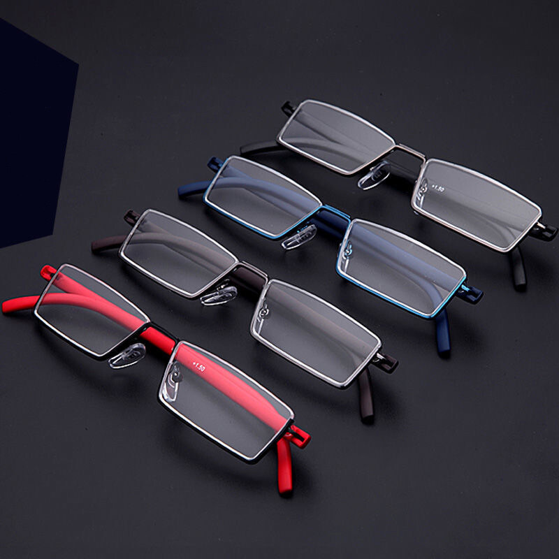 +0.5 to +6.0 Business Reading Glasses Men Metal Optical Frame Lens Anti Blue Light Presbyopia Glasses With Grade