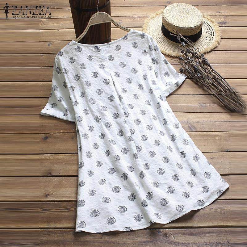 Muangee Women Vintage Retro Pullover Top Tee T Shirt Cotton Polka Dot Flare Tunic Blouse ZANZEA