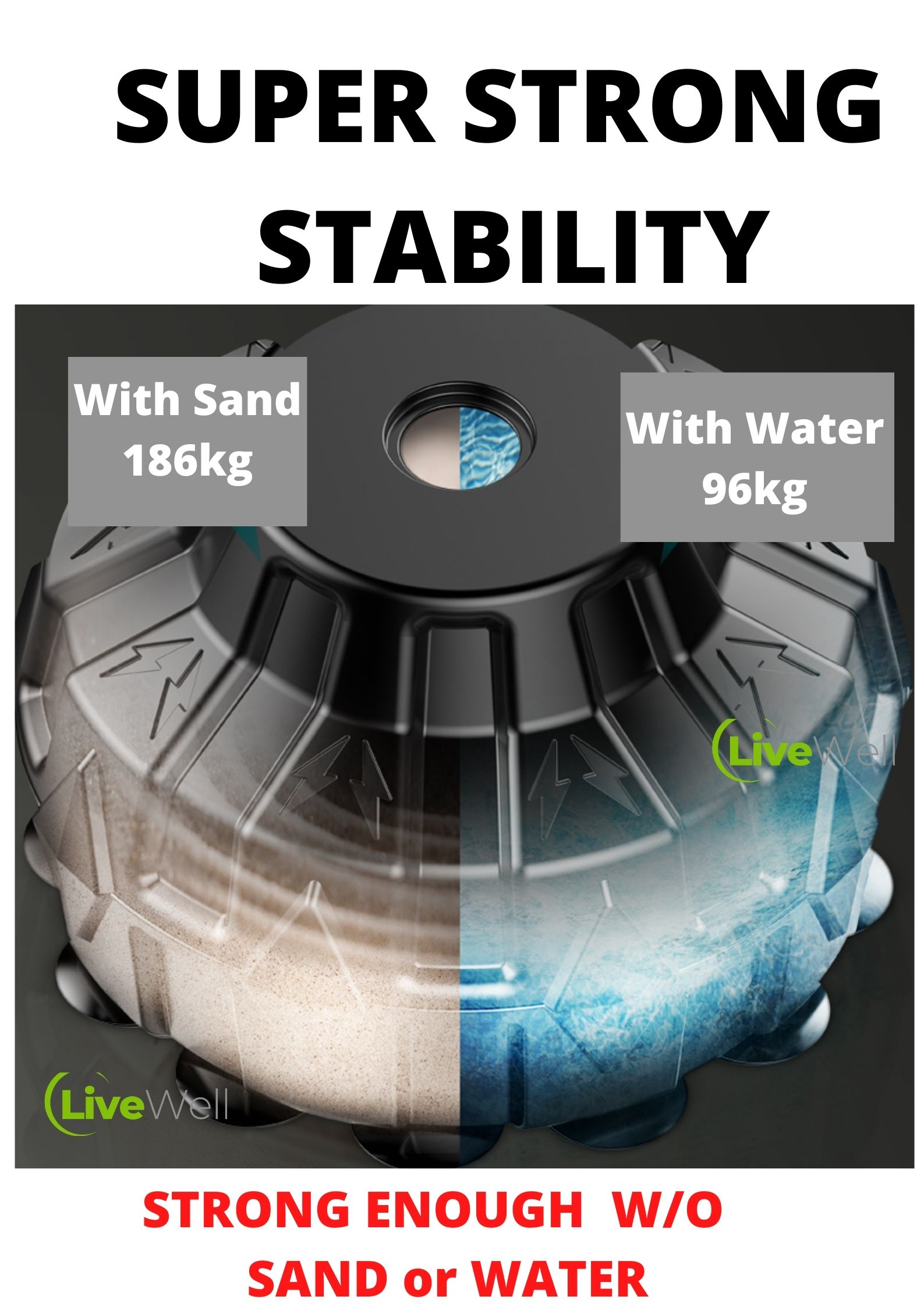 • Fill it with sand and water to even make it heavier! Able to place it on most surfaces!