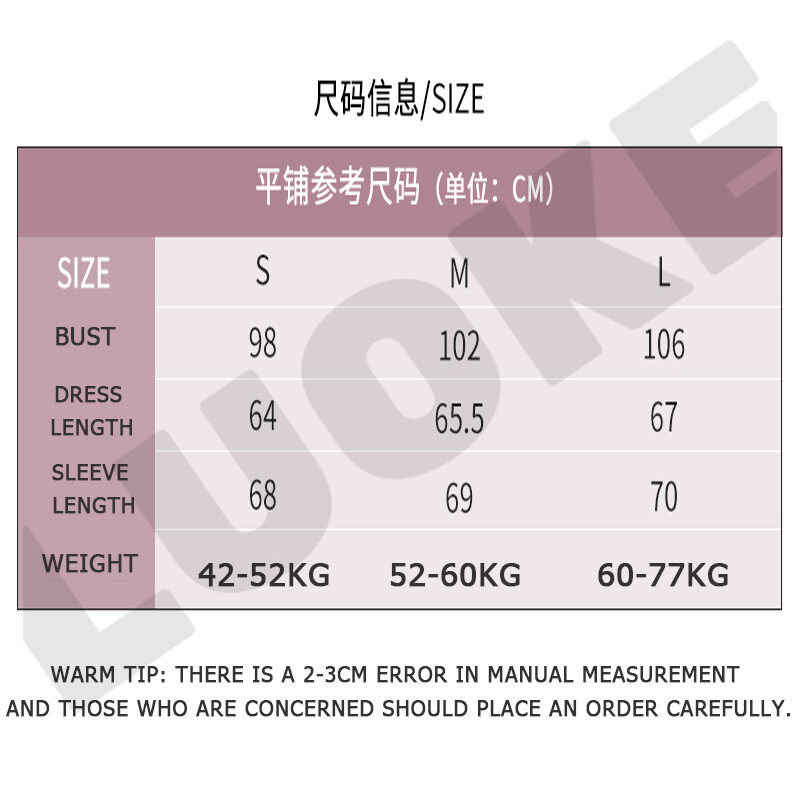 Size:M Bust:102cm Dress length:98cm Sleeve Length:28.5cm weight:52-60kg