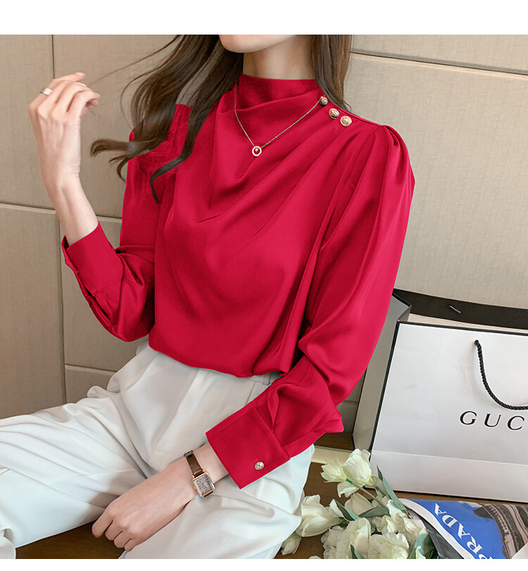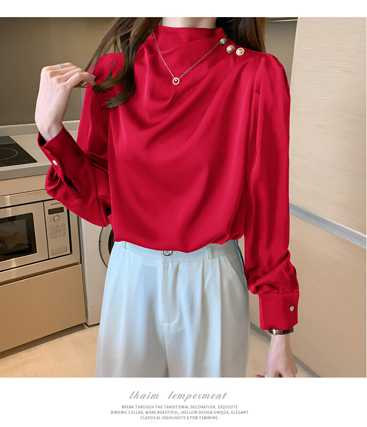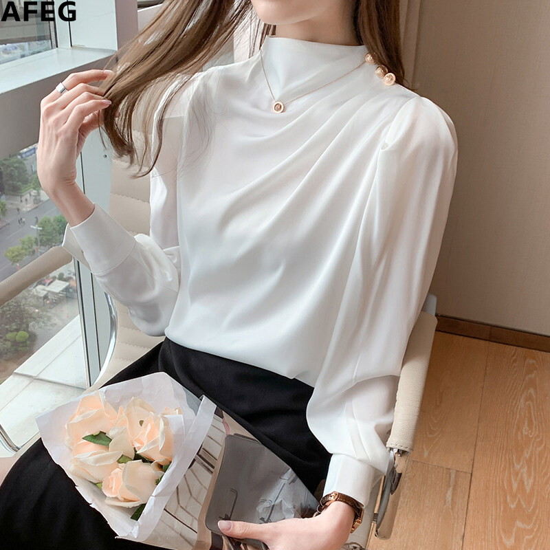 AFEG new Korean fashion all-match temperament satin long-sleeved blouse for women