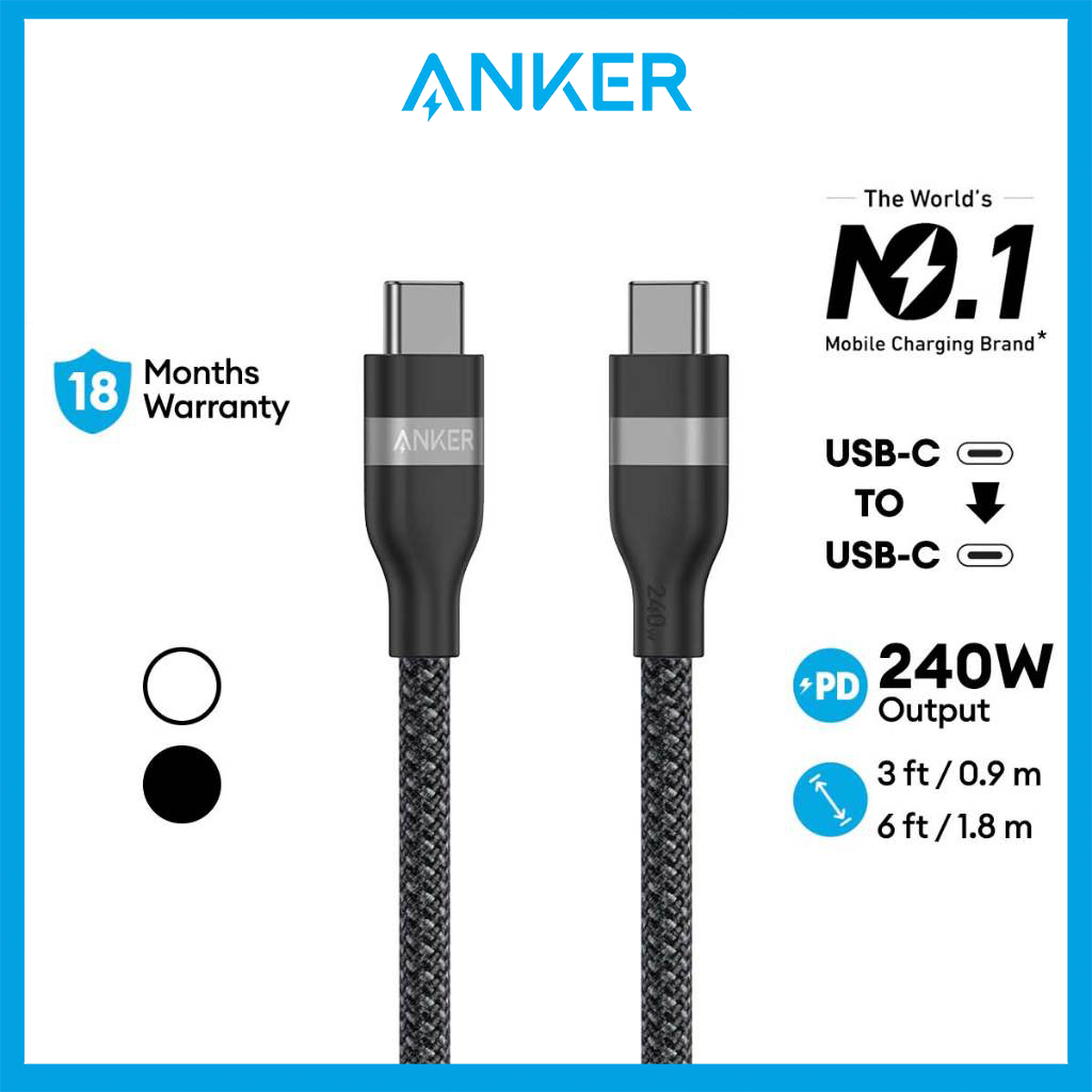 Anker USB-C to USB-C Cable (3ft / 6ft) 240W Upcycled-Braided Fast Charging Cable Type C for iPhone 16 MacBook Pro A82E2