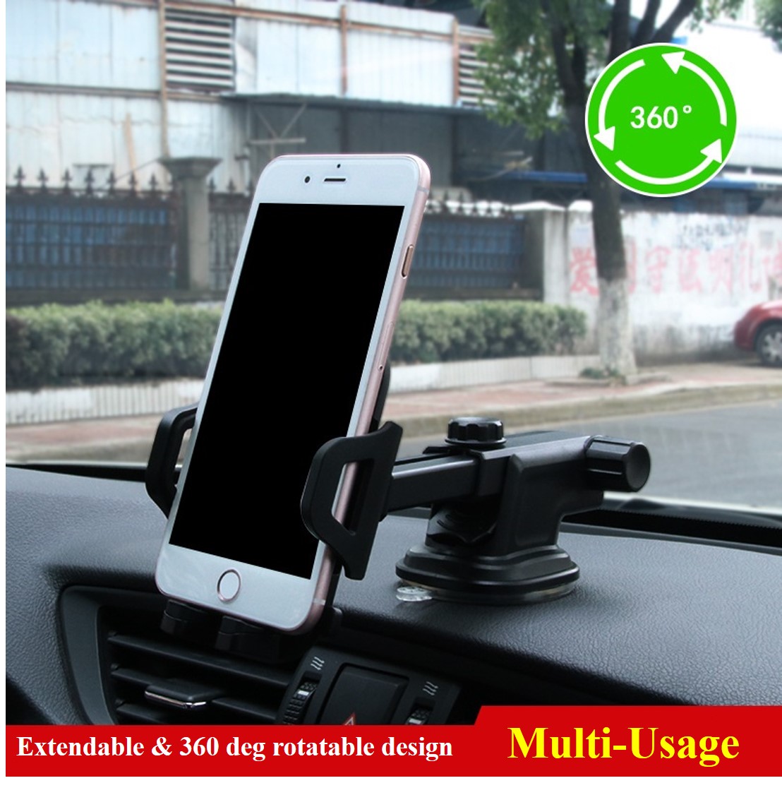 [ Free Gift ] Long Neck Extendable Dash & Aircon Vent Car Phone Holder | Rotational Vehicle Front Dash Phone Mount Compatible with Phone 11/11 Pro/SE/X/XR/XS/8 Plus Galaxy S20 Ultra S10 S10e and More