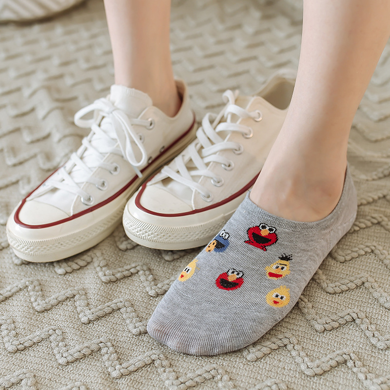(SG Seller) 5 Pairs Women Socks Cute Sesame Street Anime Socks cotton Cartoon Pattern Summer invisible Socks women Casual Lady Happy Socks for girls