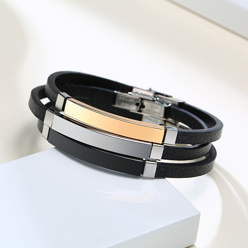 XYP Men's bracelet fashion bracelet for men leather stainless steel magnetic buckle mens accessories