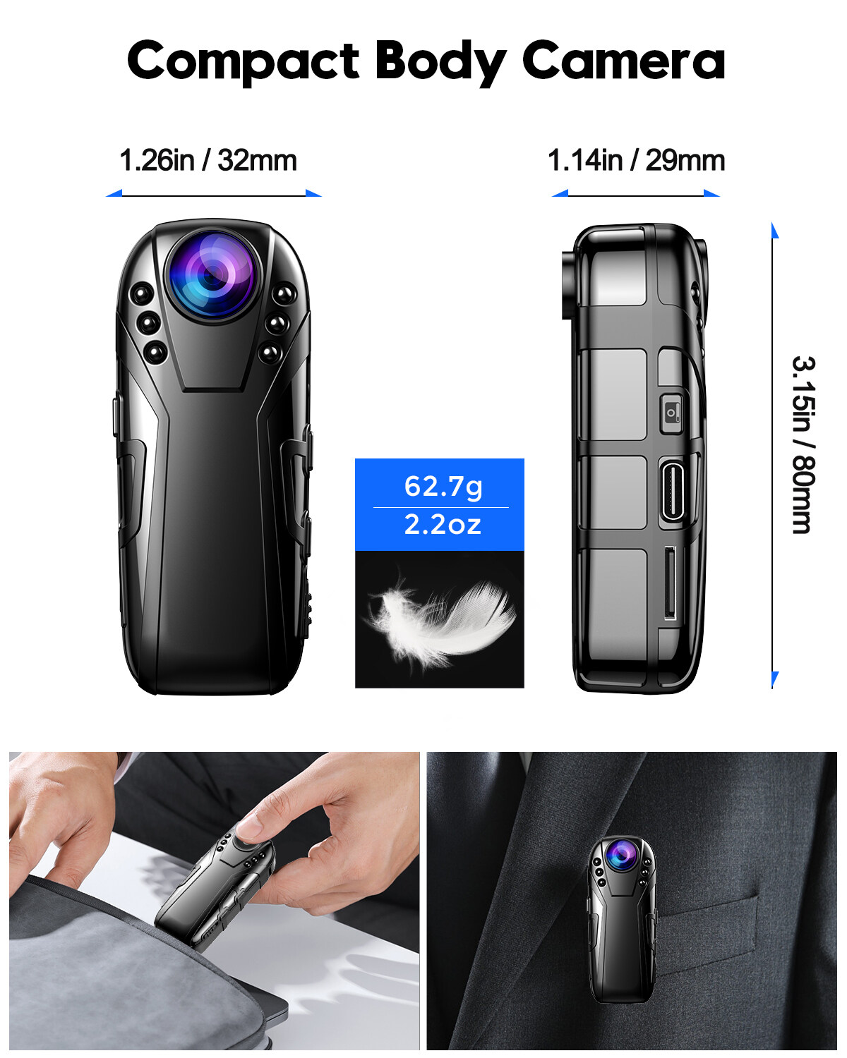 BOBLOV L02 Mini Body Camera, 1080P Night Vision IR Video Camcorder Audio Recorder Indoor Outdoor Security Mini IP Camera 125 Wide Degree