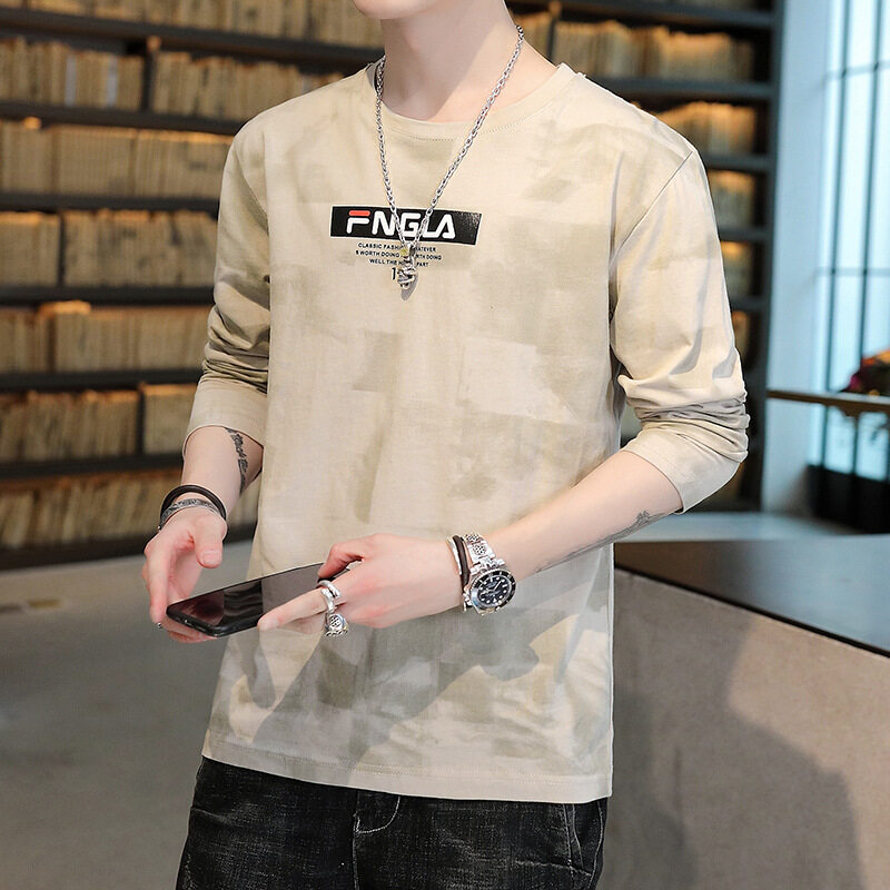 t shirt Men Long Sleeve New Korea Style Plus Size Print t-shirts Clothes Fashion Tops Causal Oversize Korean Style Tees