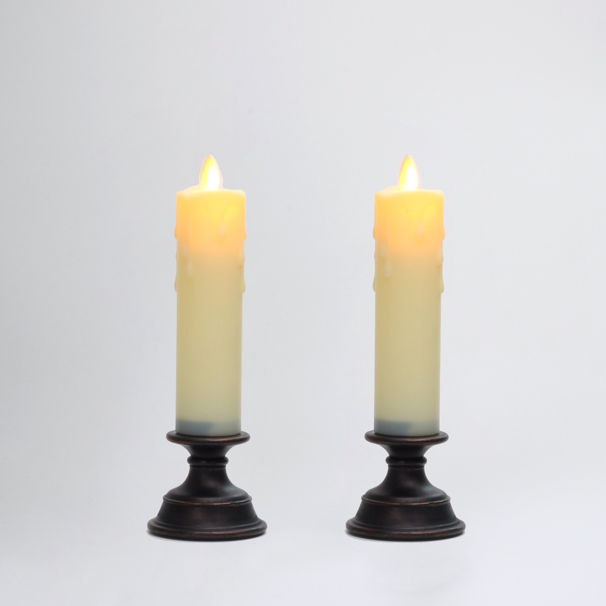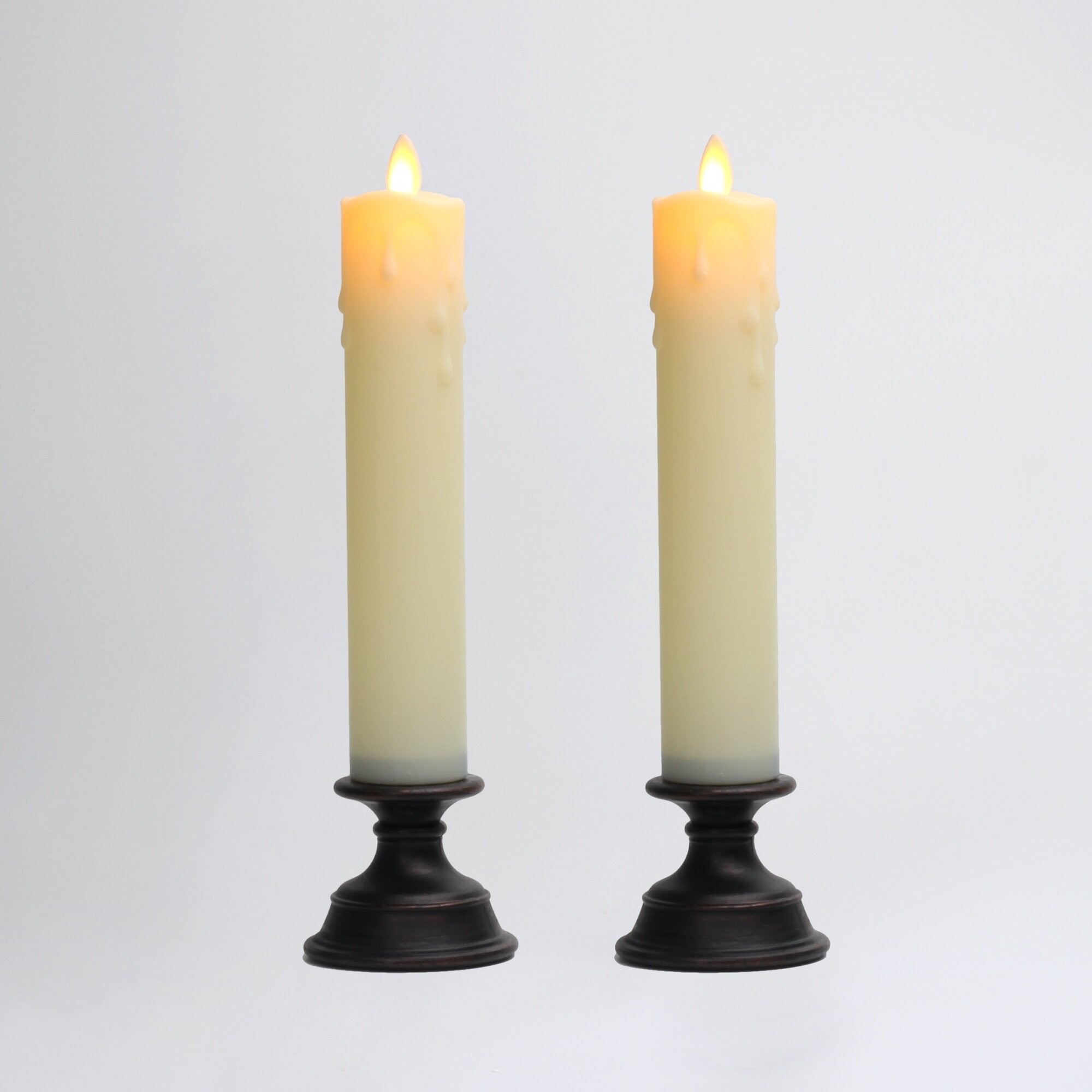 Wax Dripped Flickering Flameless Fake LED Taper Candle Powered by 2 AAA Batteries(NOT Included) Lighting 120+ Hrs, Black Candle Holders for Halloween,Xmas,Home Decor