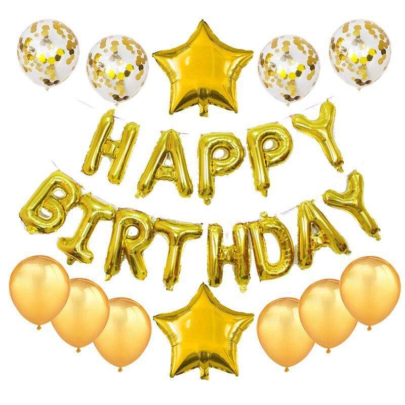 Product type: Balloons Occasion: Christening & Baptism,Wedding,Back To School,Birthday Party,Graduation,Party,Christmas,Wedding & Engagement,Children's Day,New Year,Grand Event,Anniversary Model Number: foil balloon Package include: 6pcs 12inch latex balloons 4pcs 12inch latex confetti balloons 2pcs 18inch foil balloons 1set HAPPY BIRTHDAY letter foil balloons