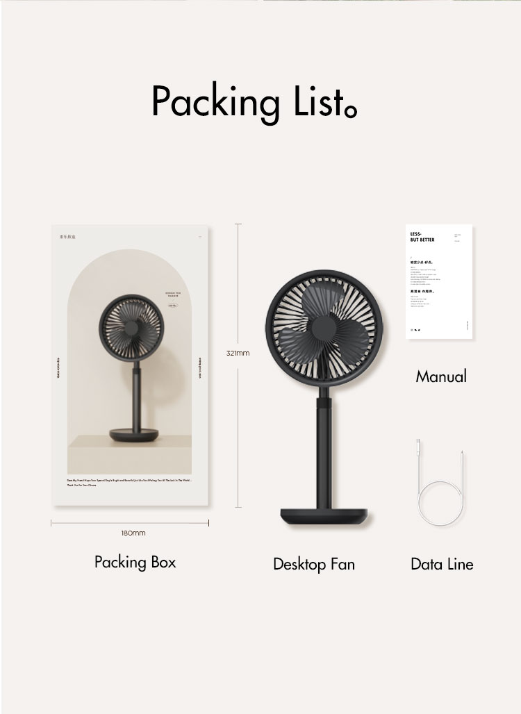 Package Included:1 x Fan1 x Type-C Data Cable1 x Instruction manual1 x Package Box