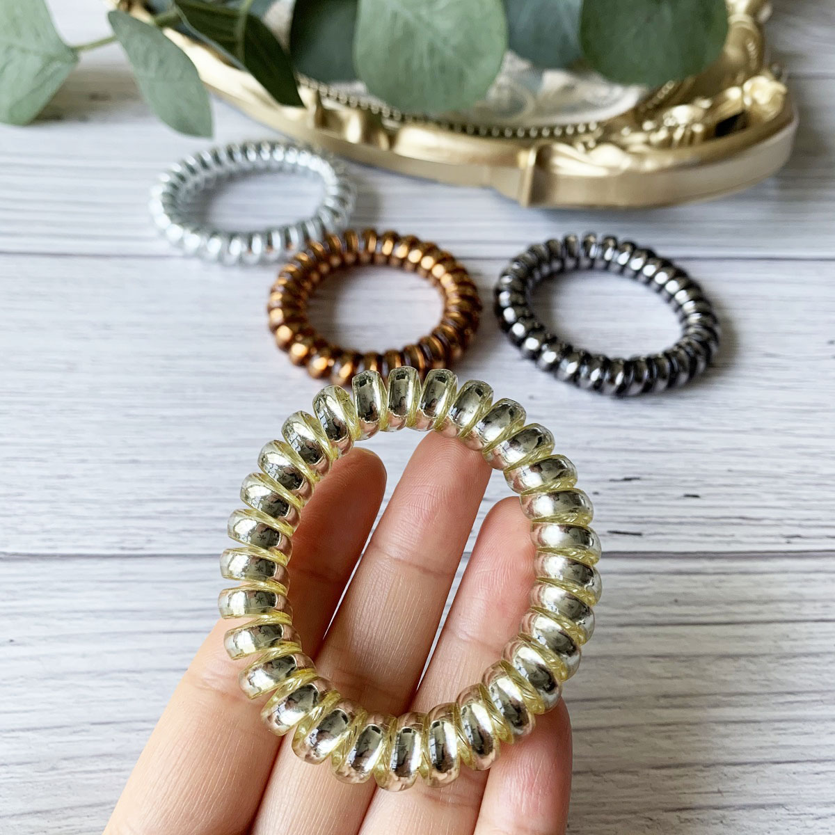[SG Metallic Light] 4pc set 5cm Metallic Big Coil Hair Ties, Traceless Hair Ties, Phone Cord Hair Ties Multicolor Large Spiral Hair Ties, Mega Hair Coil Set for Thick, Curly and Long Hair, Dent, Creas