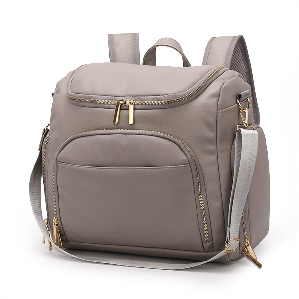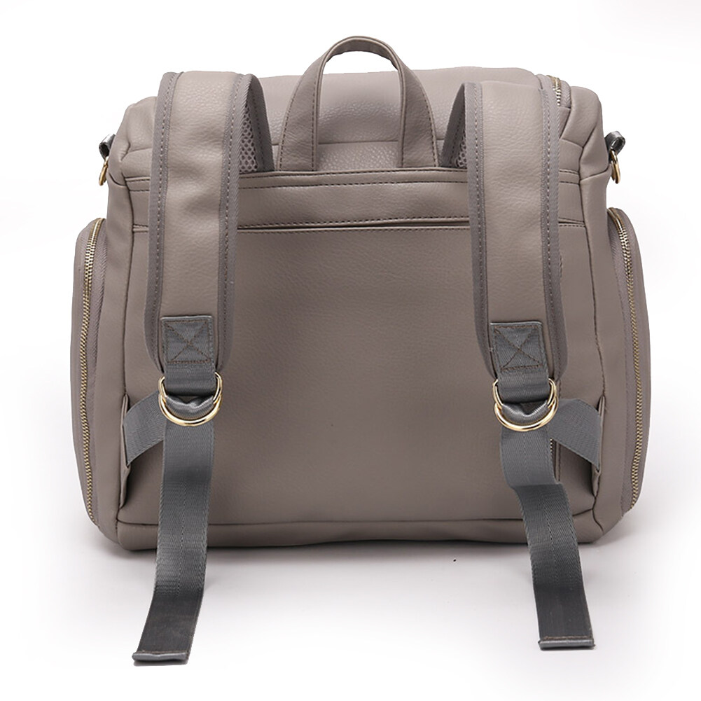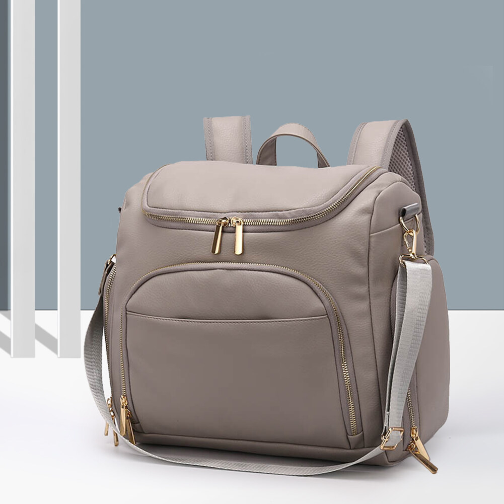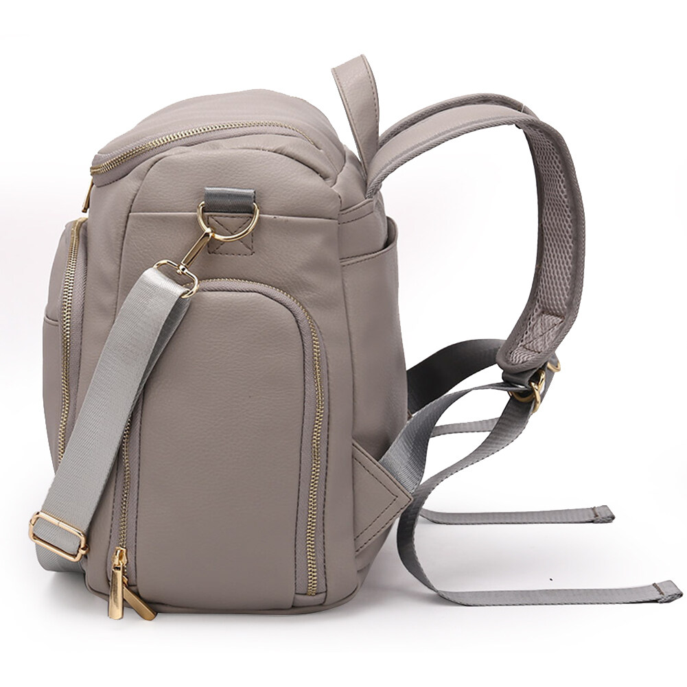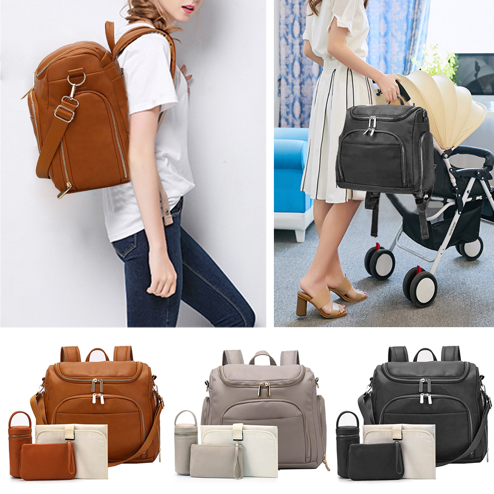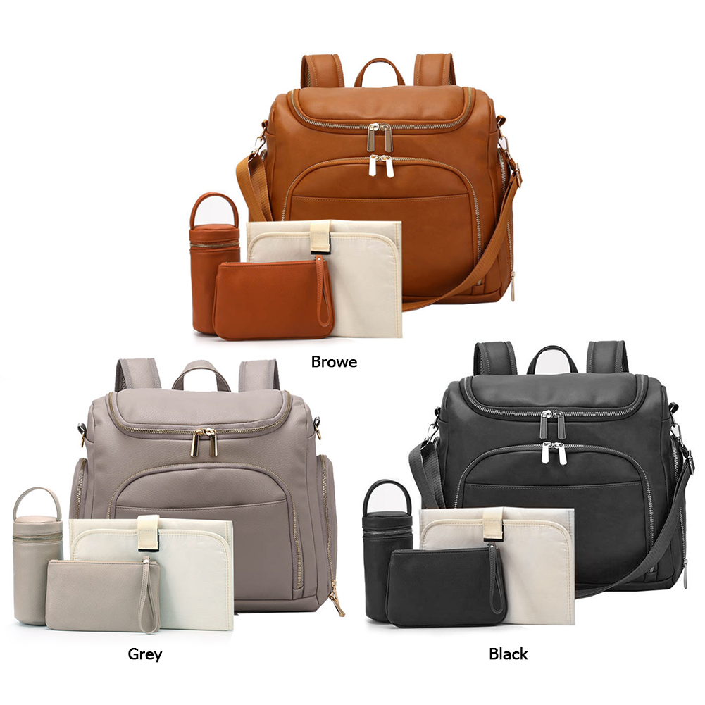 Solid Color PU Leather Large Capacity Diaper Bag Maternity Backpack Mommy Bag Backpack Stroller Bag for Travel Totes Feature: 1. The front and top can be opened, very convenient to take items. 2. Special milk bottle division, two side bottle bags, tin foil insulation layer; tableware storage design. 3. Invisible anti-theft bag design and back-to-back anti-theft, making valuables more secure and private. 4. Designed for baby strollers, it can be suspended on the stroller. 5. Large internal space for milk powder cans, baby clothes, diapers, talc, towels, shoes, etc. Specification: Material: PU leather, nylon taslon Waterproof: water resistant (water will slip on the bag, but it's not completely waterproof.) Size: 40x30x15cm / 15.7x11.8x5.9in Accessories: 2* hook, 1* shoulder strap, 1* urinal pad, 1* cosmetic bag, 1* bottle insulation bag Purpose: shoulder bag/crossbody bag/handbag/strollers suspension Color: Brown, Black, Grey Note: Due to the different monitor and light effect, the actual color of the item might be slightly different from the color showed on the pictures. Thank you! Please allow 1-3mm measuring deviation due to manual measurement.