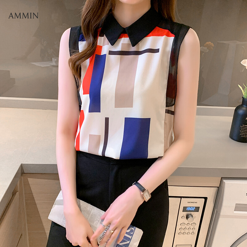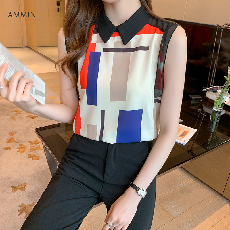 AMMIN Women's sweet doll collar sleeveless striped chiffon shirt Women's 2021 summer new style fashionable and elegant blouse tops