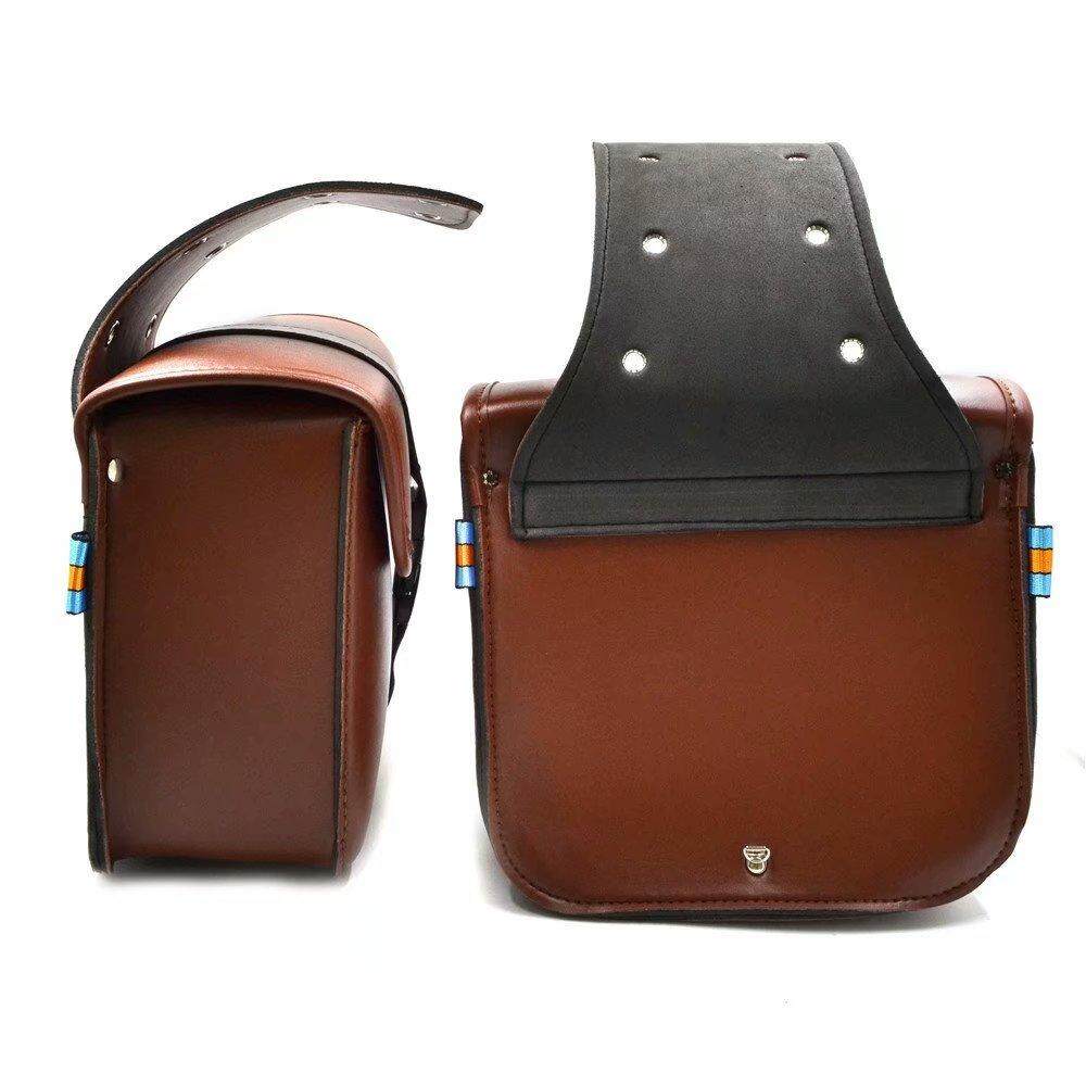 【25 x 12 x 24cm】(2pcs) Leather Motorcycle Saddle Bag Waterproof PU Leather Side Bag Luggage Tool Storage Pouch For Harley Sportster Softail Honda Suzuki Yamaha Cruiser