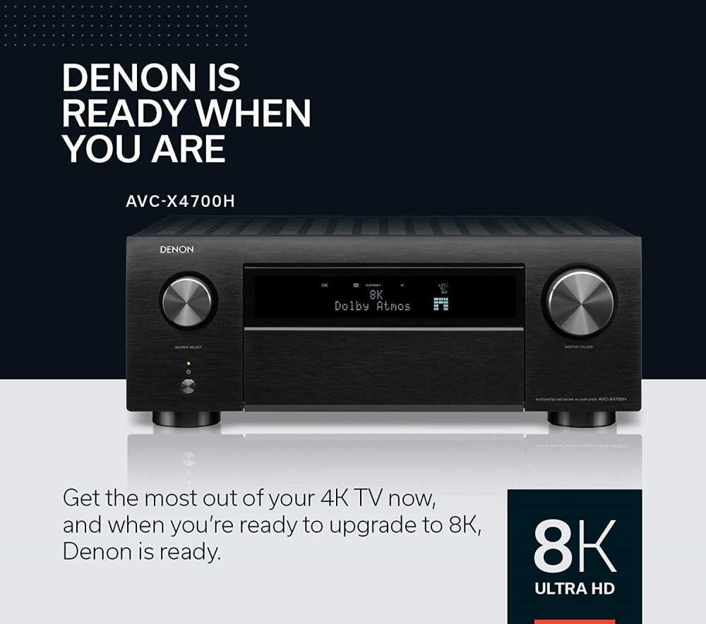 With the new AVC-X4700H, enjoy all your entertainment with latest technology available and watch your movies in unrivaled clarity. Enjoy your movies in 8K with 8K/60Hz pass-through and upscaling, as well the latest in AV receiver technology like Dynamic HDR and Quick Media Switching (QMS), which is used in movies to eliminate video delay.