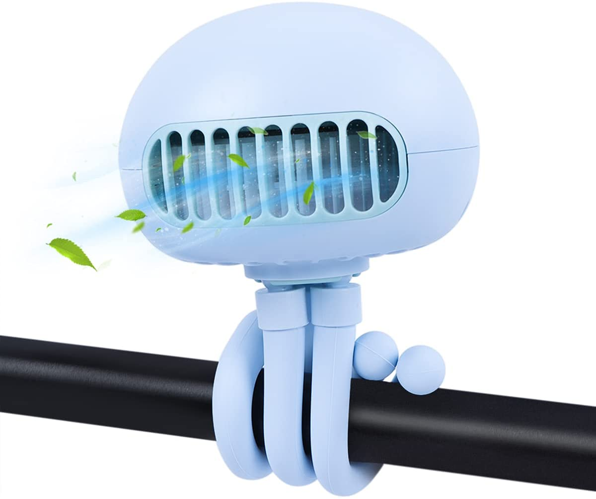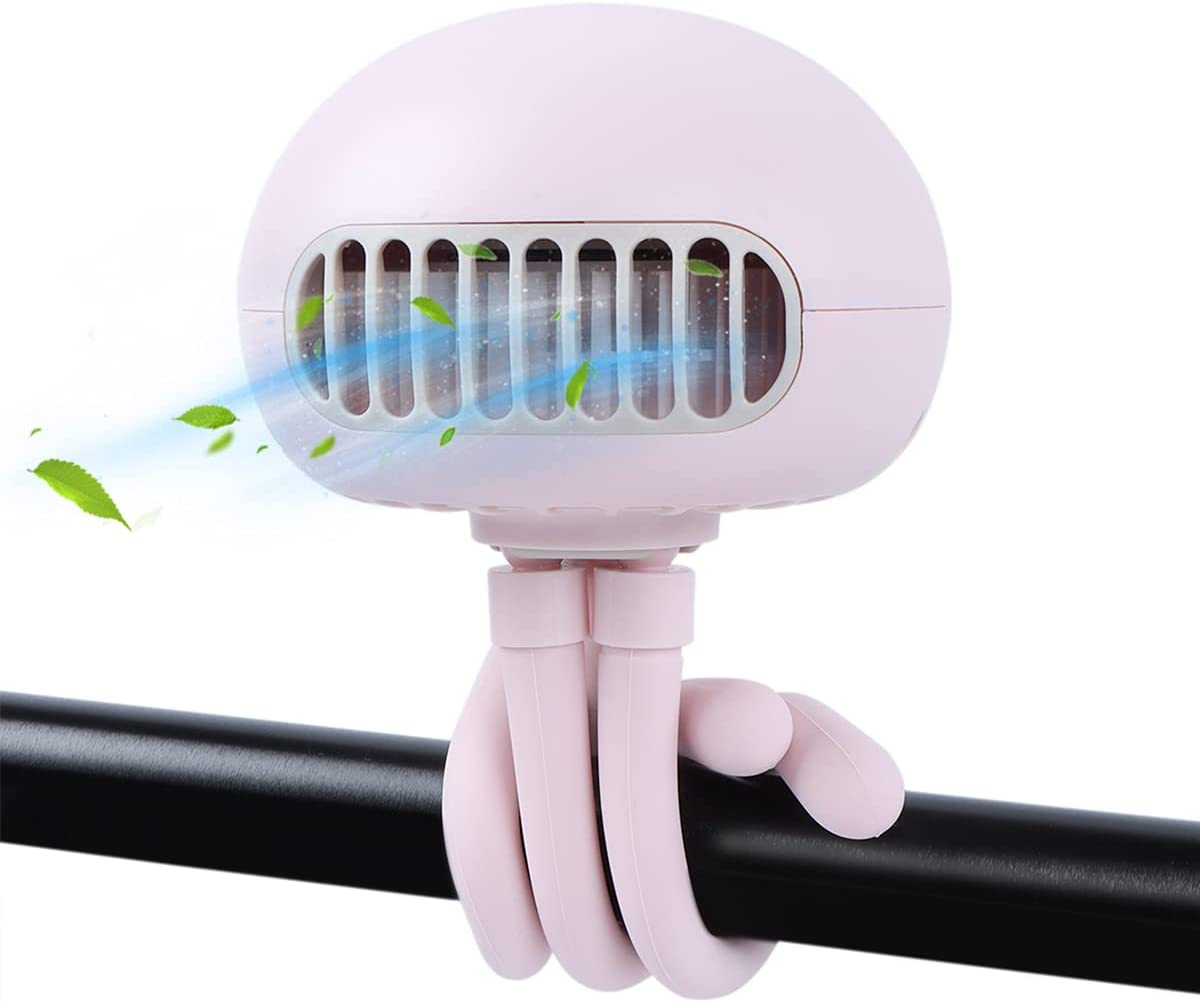 Orzbow Portable Mini Stroller Fan with Flexible Upgrade Tripod Cute Jellyfish Shape Design USB Rechargeable Personal Handheld Fan