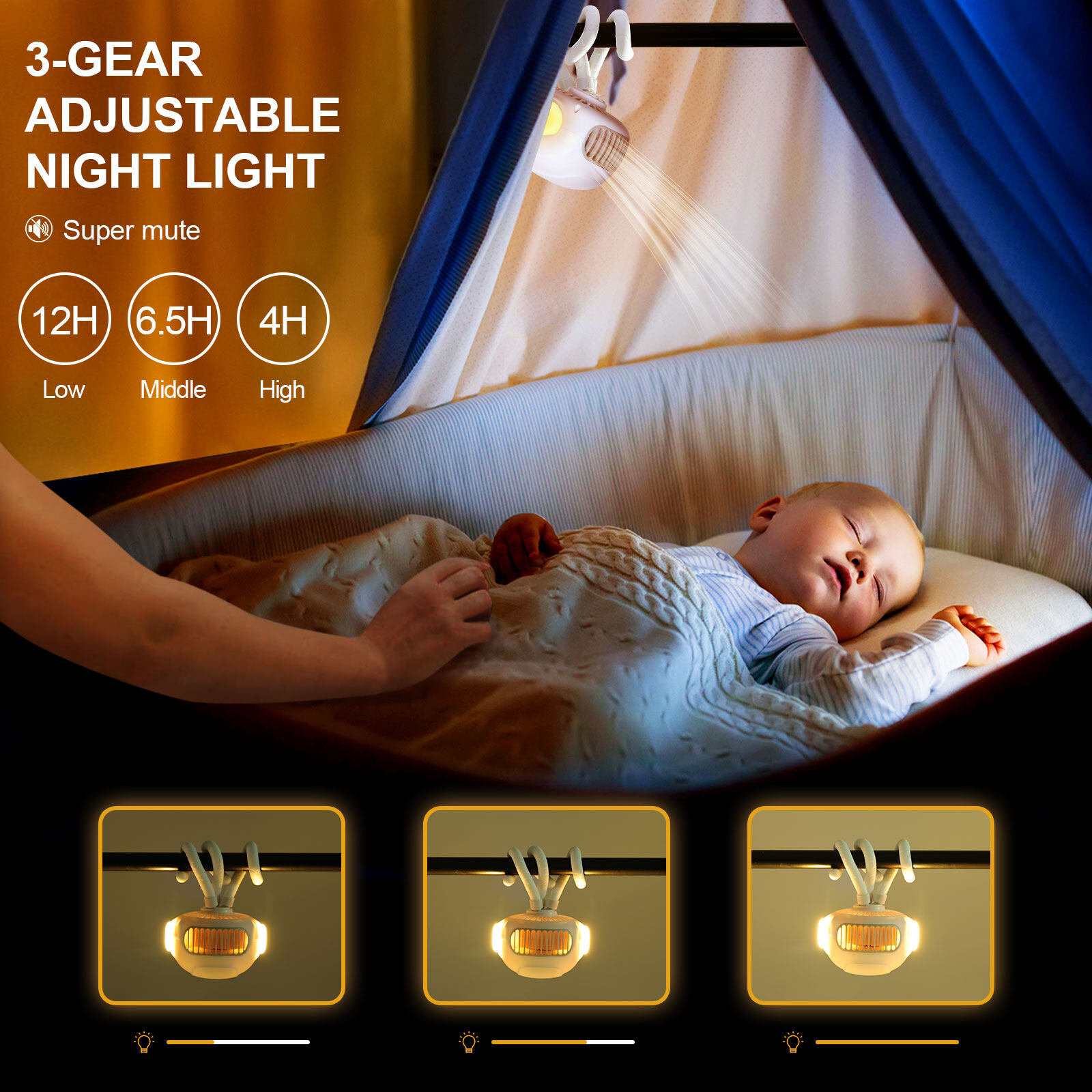 2.Three-speed adjustable, strong airflow and low noise.(Repeatedly press the button to change gears)