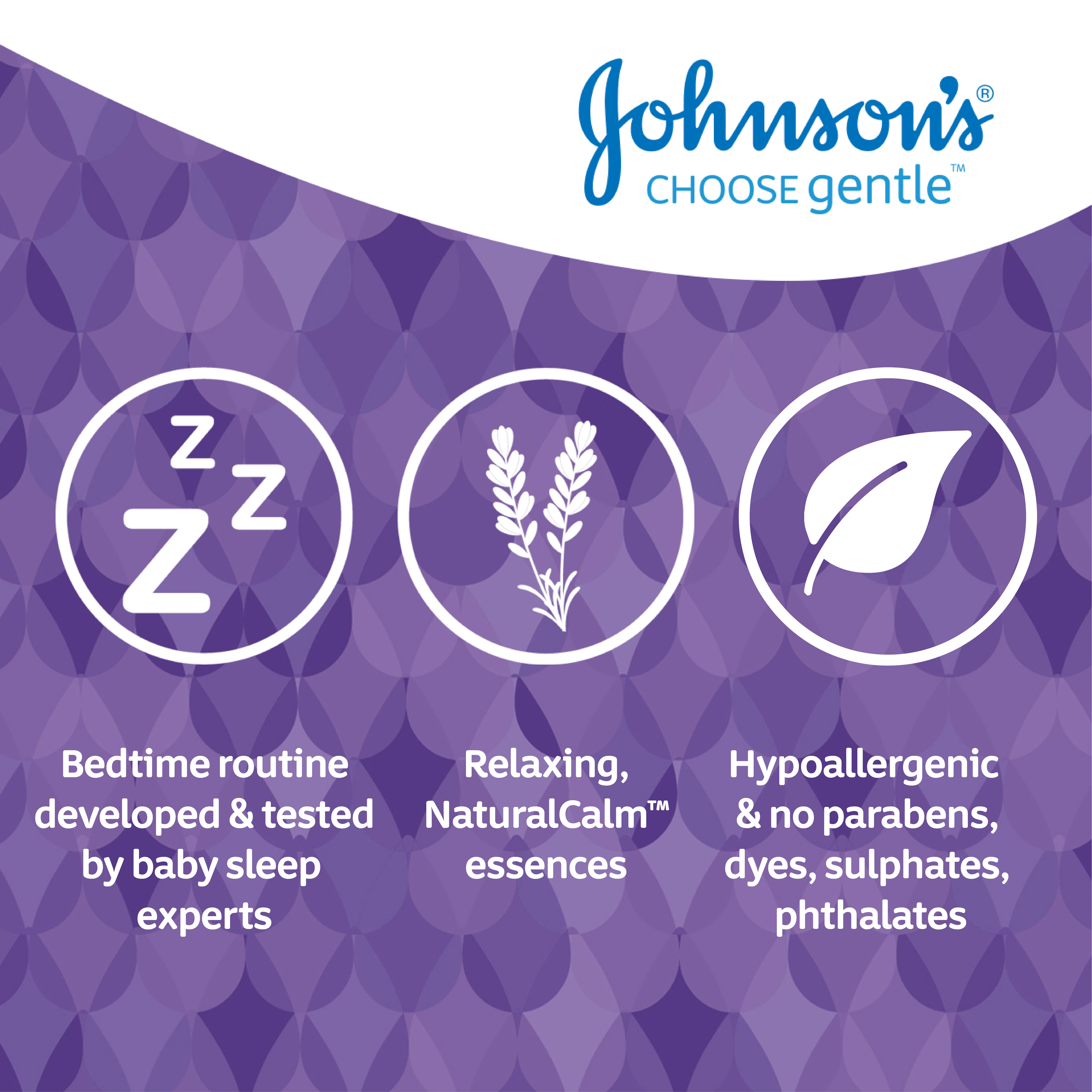 Johnson's® Bedtime™ baby bath with NaturalCalm® essence, clinically proven to help calm and comfort baby before sleep* (Did you know?) A soothing nightly ritual can help send your growing baby to dreamland. Our product compliments your baby’s bedtime routine for a comfortable night’s sleep.
