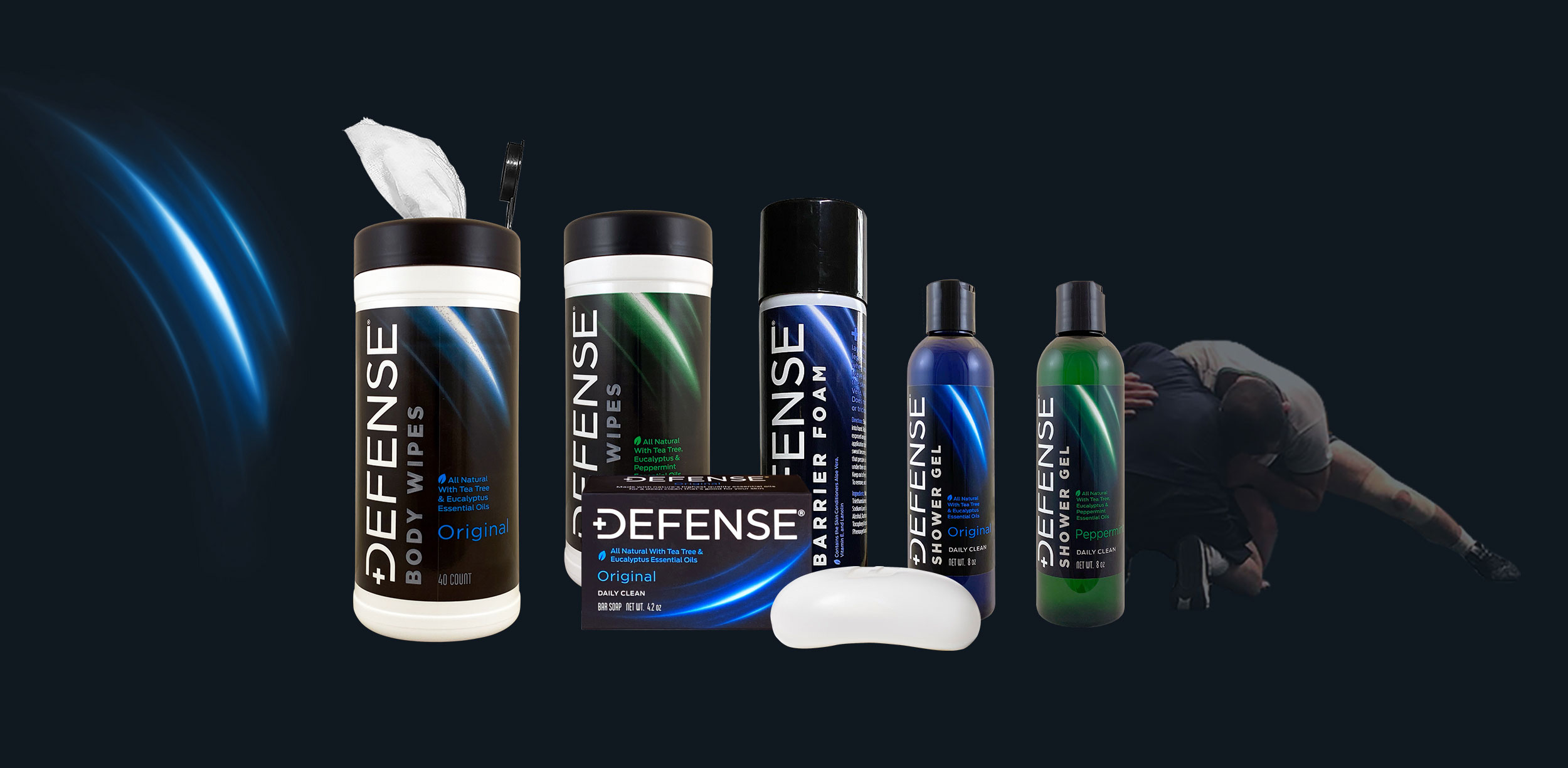 Defense Soap Bars and the Defense Soap line of products are created specifically for combat athletes and anyone interested in using our all natural soap to keep their skin clean. Made with natural botanicals and only the finest natural essential oils, these products will keep you clean on and off the mat and any where locker room grunge and mat grime could be a problem.The Defense Soap Bars contain the highest concentrations of therapeutic botanicals possible to put in a bar of soap. From the stand point of hygienics, Defense Soap is a therapeutic cleansing soap, not a medicine. It is not intended for use in the diagnosis, cure, mitigation, treatment, or prevention of disease in humans. Defense Soap Bars and the Defense Soap line of products are created specifically for combat athletes and anyone interested in using our all natural soap to keep their skin clean. Made with natural botanicals and only the finest natural essential oils, these products will keep you clean on and off the mat and any where mat grime could be a propblem.Defense Soap natural bars are packed with a full 2% of high quality essential oils and manufactured in FDA regulated facilities. Our quality controlled manufacturing process assures the necessary consistency to achieve the kind of dependability and effectiveness you expect from Defense Soap.