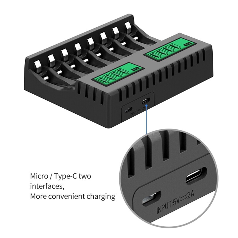 Battery Charger LCD Display Smart Intelligent 8-Slot Chargers for AA/AAA NiCd NiMh Rechargeable Batteries AA AAA Charger