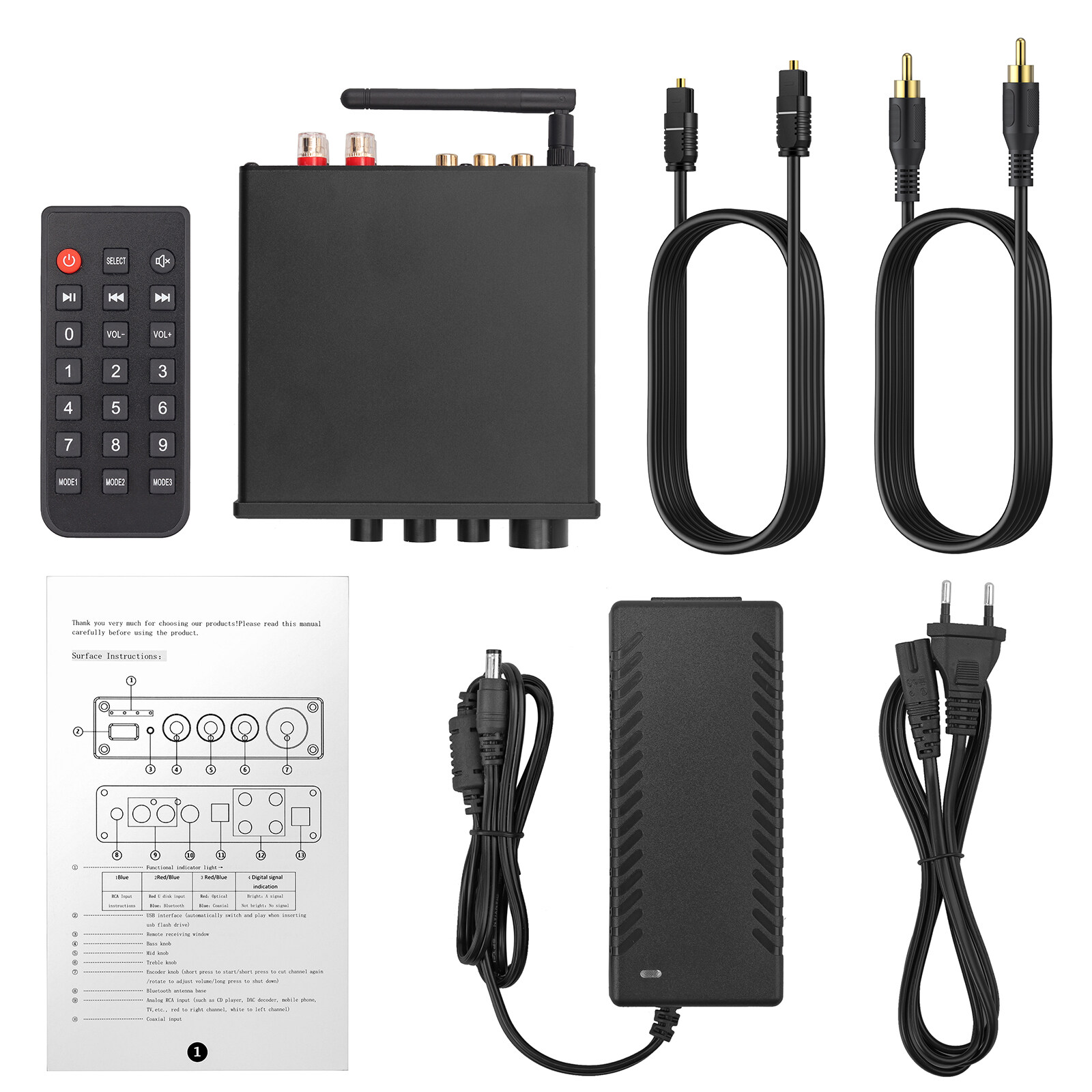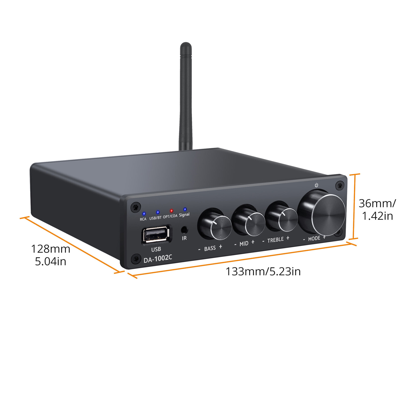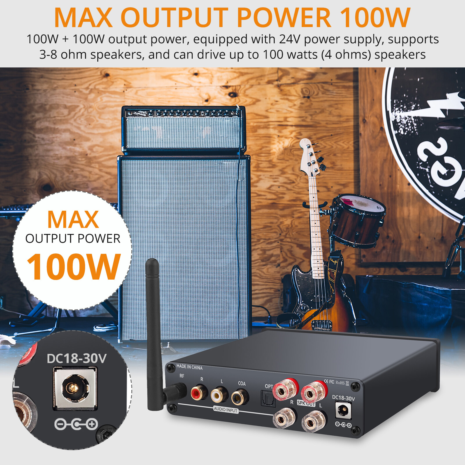 Neoteck 192kHz/24bit 100W + 100W Stereo Audio Amplifier Bluetooth 5.0 Receiver Hi-Fi Digital Power Amplifier DAC Optical Coaxial to Analog Audio Converter with IR Remote Control for Passive Speakers