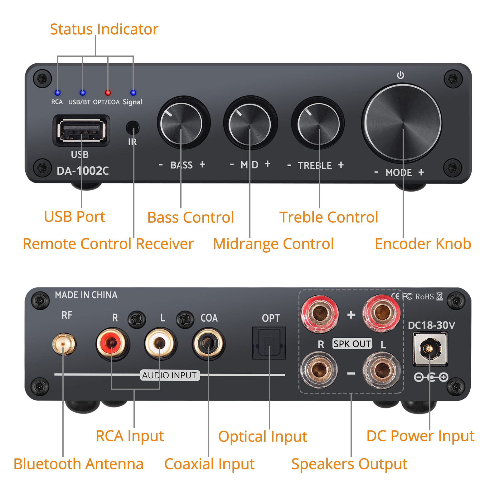 1. Built-in high-performance TPA3221 and DAC chip, support 192K/24bit sampling rate.