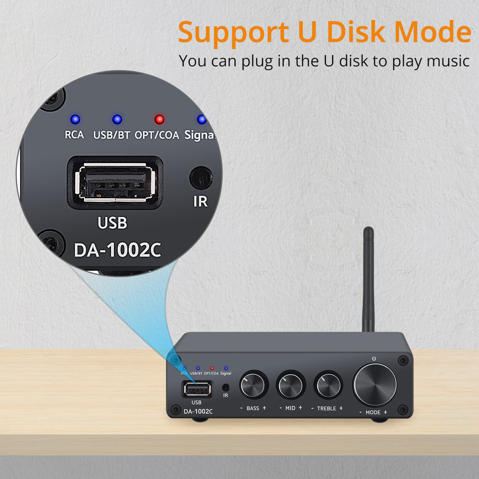 4. Support optical, coaxial, RCA, USB flash disk input model switching.