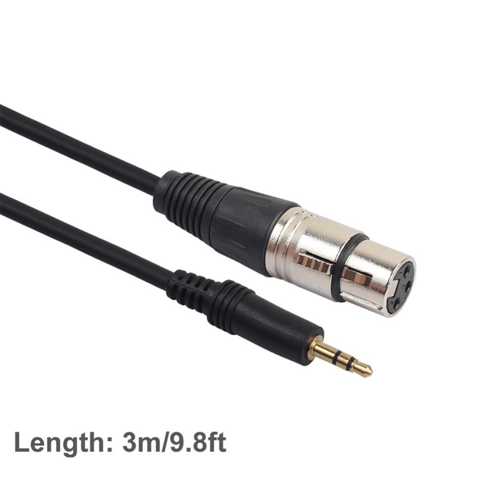 3Pin XLR Female to 3.5mm TRS Male Cable Audio Adapter Microphone Cable Extension Wire Cord for Phone Mixer CD Player Description: This cable is designed to connect a stereo microphone with a single XLR output to a 3.5mm jack stereo input. It is mainly used for mobile phones, computers, mixer, live equipment and microphone connection.