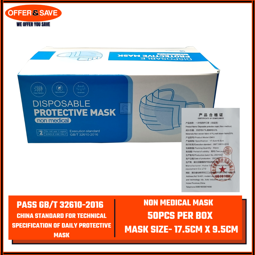 [Local Stock] 3 Ply 50pcs Medical Face Mask FDA CE ISO Approved / Non Medical 3 Ply Face Mask China Standard Approved