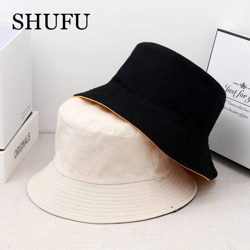 SHUFU1002 Ready Stock unisex korean double-sided bucket hat for women casual plain denim cap for men