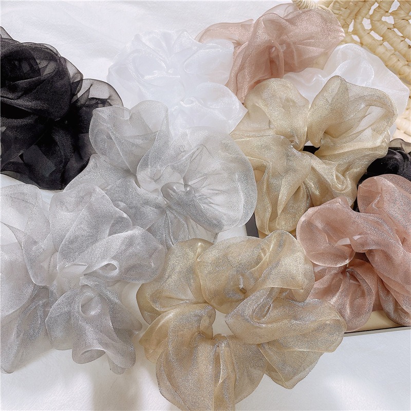 [SG | Super Fluffy] Shining Organza Large Scrunchies Women Hair Ties - Big Scrunchy Hair Bands Elastic Hair Accessories Soft Large Scrunchies For Girl Women