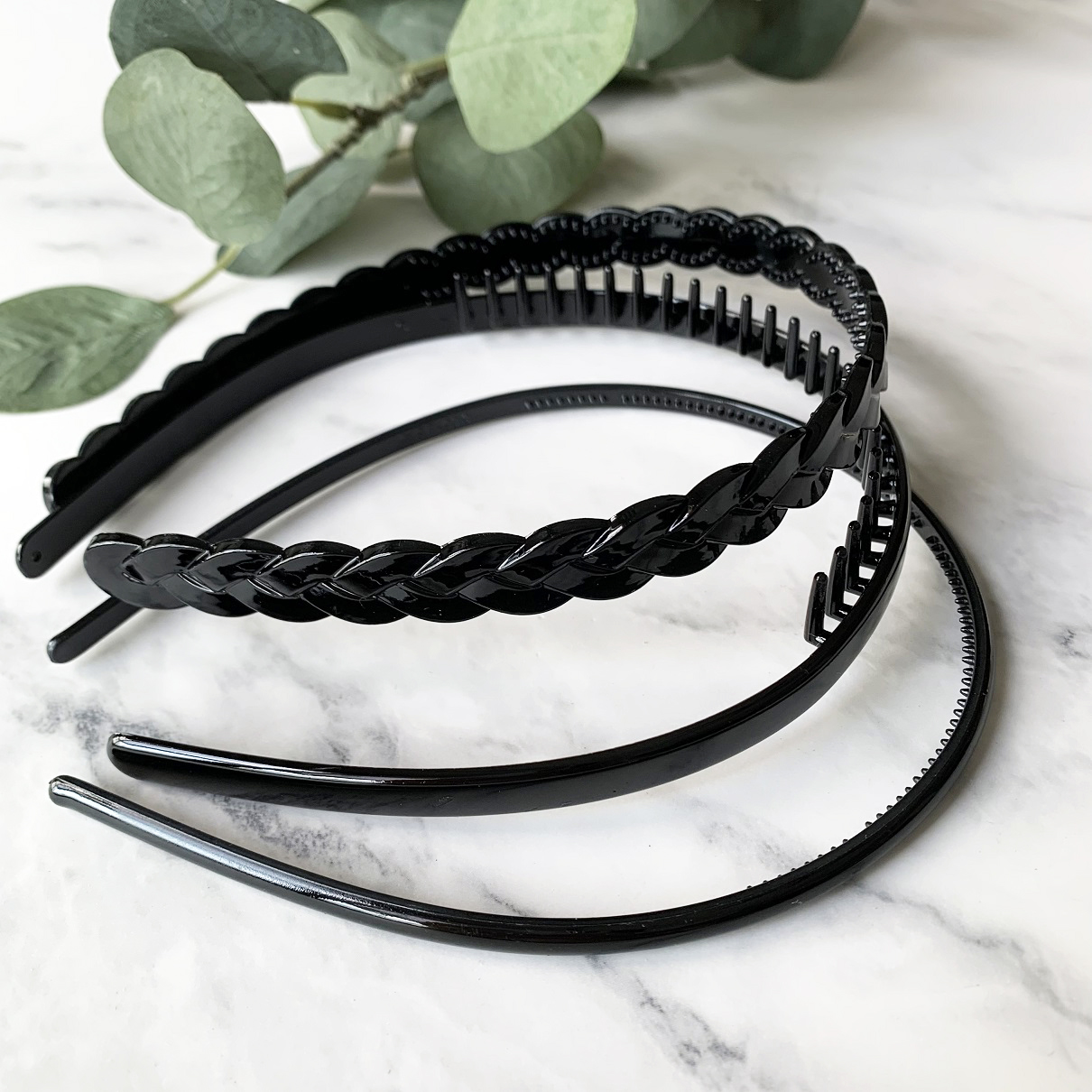 - ✔【3 headbands in 3 designs】: The set contains 3 designs of headbands in different thickness. Enough for daily use and replacement. 3 kinds of simple and basic black hairbands can match nay of your clothes in daily life.