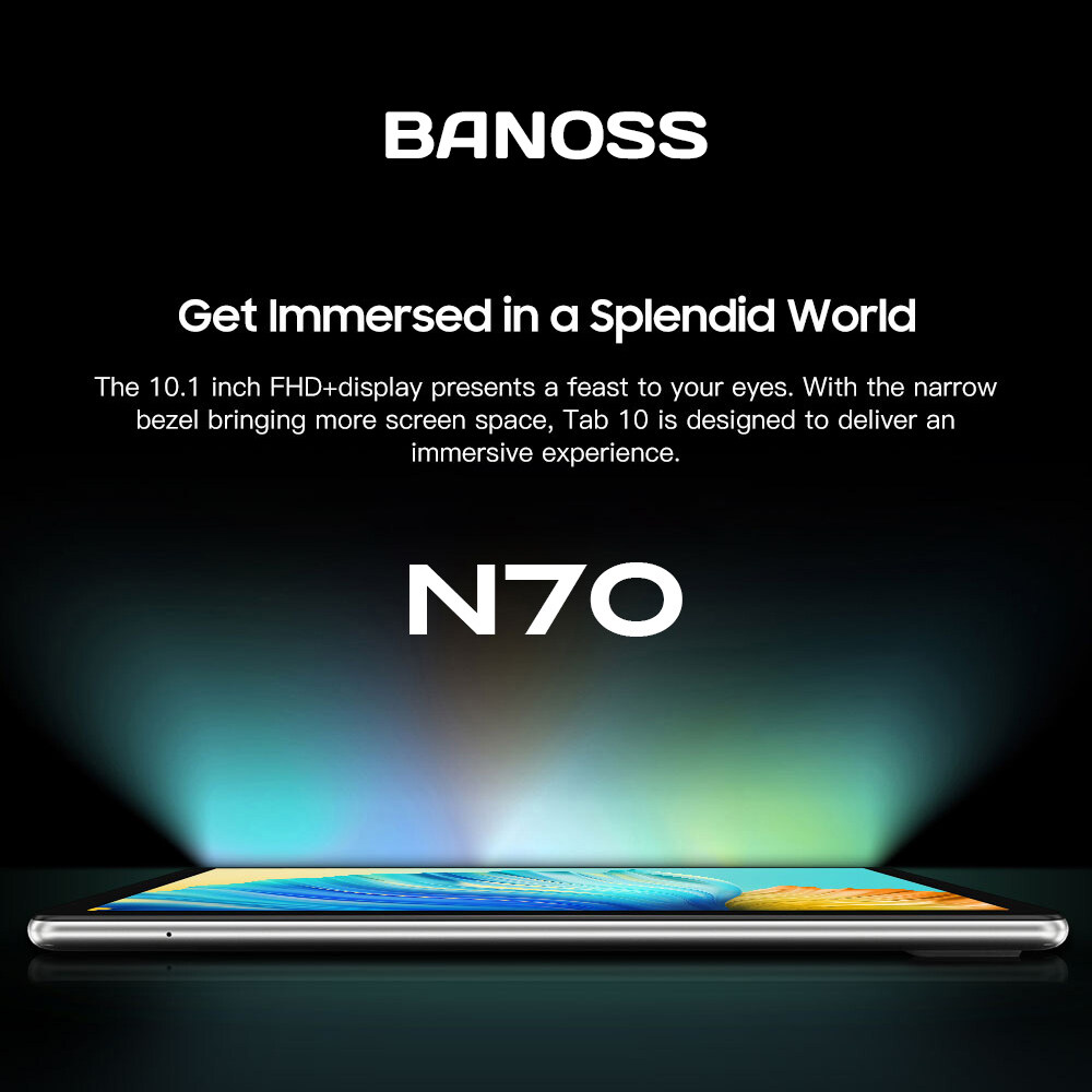 BRAND PROMOTION: 【Buy 256GB Ship 512GB】- Customer just need to order 8GB+256GB variant, then seller will auto ship 10GB+512GB without paying price difference. Limited Quantity Offer 100pcs for sales ONLY!!! WARRANTY: 【1 Year International Warranty】- Comes with BANOSS Official warranty card. We support 1 year free item warranty, in case the item getting any issue without non-aritificial damages, we can repair and even give 1to1 exchange new item. PRODUCT FEATURE: 【SUPERIOR WATCHING EXPERIENCE】BANOSS N70 Tablet is powered by 10-Core Processor. 2022 upgraded Android 11 tablet provides + 40% faster processing speed than regular Quad-Core. 10.1-inch Tablet screen size with 1920x1200 resolution support, perfect for home entertainment and office. DUAL-BAND WI-FI】The 2022 BANOSS N70 Built-in Dual-band wifi module, Support 2.4/5Ghz wifi, the faster wifi you get, the more stable wifi for your smoother watching movie experience. 【DUAL-SIM】The 2022 BANOSS N70 Tablet support dual SIM feature, support 3G/4G/5G netowrk, and also support phone call feature. All-in-One Tablet that make your life experience be more easier and convenient. 【BIGGER THAN BIGGER】The tablet has 8GB RAM, 256GB/512GB internal storage. The GMS Certified latest Android Tablet, with basic Google apps already on and without bloatware. Get rid of unexpected ads and download apps from Google Play, such as SKYGO, NetFlix, YouTube and more. 【LONG LASTING BATTERY】Equipped with a long-lasting and environmentally compliant 8800 mAh battery, this 10-inch tablet will effortlessly provide you with up to 8 hours of support for reading, browsing, watching movies and playing games. The long-lasting battery life and lightweight design allow you to enjoy your tablet anywhere, anytime. 【DUAL CAMERAS AND SPEAKERS】With front 5 MP & Rear 13 MP dual cameras, which would bring your excellent photos and clear video chats. Dual speakers are designed to provide high-quality and powerful sound for your favorite music, games and videos. SPECIFICATIONS: Model: BANOSS N70 (2022) CPU: X30 10-Core System: Android 11 (System Upgradable) Screen Size: 10.1 Inches IPS Screen Screen Resolution: 1920 * 1200 WiFi: Dual Band 2.4G/5Ghz WiFi Bluetooth: BT 4.0 Battery: 8800mAh Li-on Battery Camera: Front 5MP + Rear 13MP Speaker: Dual Stereo Speaker RAM: 6GB/8GB/10GB ROM: 128GB/256GB/512GB Cellular: 3G/4G/5G DUAL SIM Charging Port: Type C WHAT'S IN THE BOX: 1 * Tablet PC 1 * User Manual 1 * Type C Cable 1 * SIM Card Pin 1 * Official Warranty Card SPECIAL FREE FITS: 1 * Leather Flip Case (Limited Gifts) 1 * Bluetooth Keyboard (Limited Gifts) 1 * Tempered Glass Screen Protector (Limited Gifts) 1 * OTG Converter (Limited Gifts)