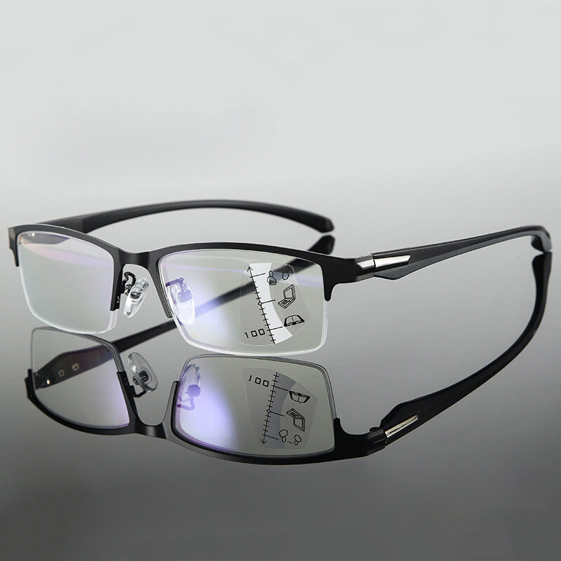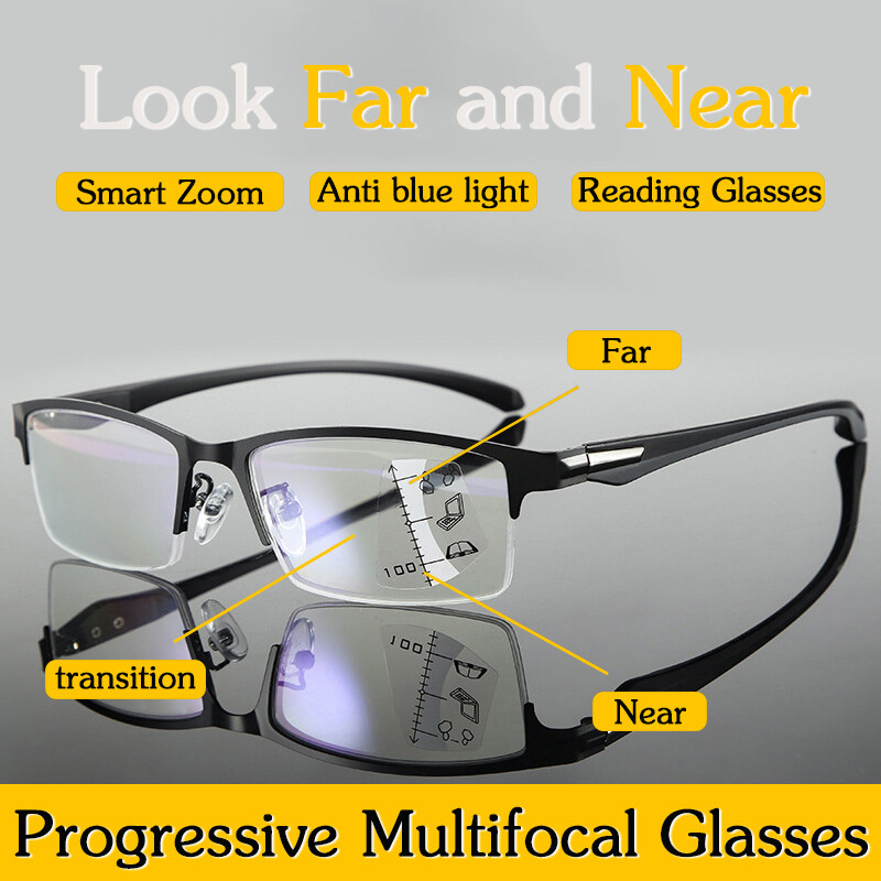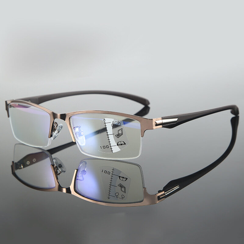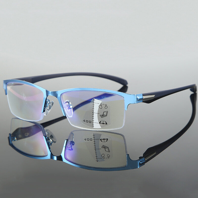 【3in1】Progressive Multifocal Reading Glasses Smart Zoom Anti-Blue Light Metal Frame Glasses Business Style Presbyopic Glasses