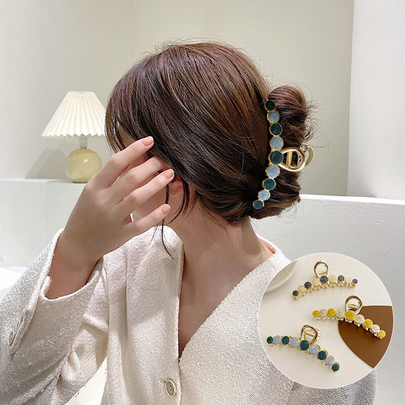 Ponytail Holder Hair Clips for Women Fashion Colorful Beads Hair Claws Elegant Metal Make up Barrettes Girls Hair Accessories