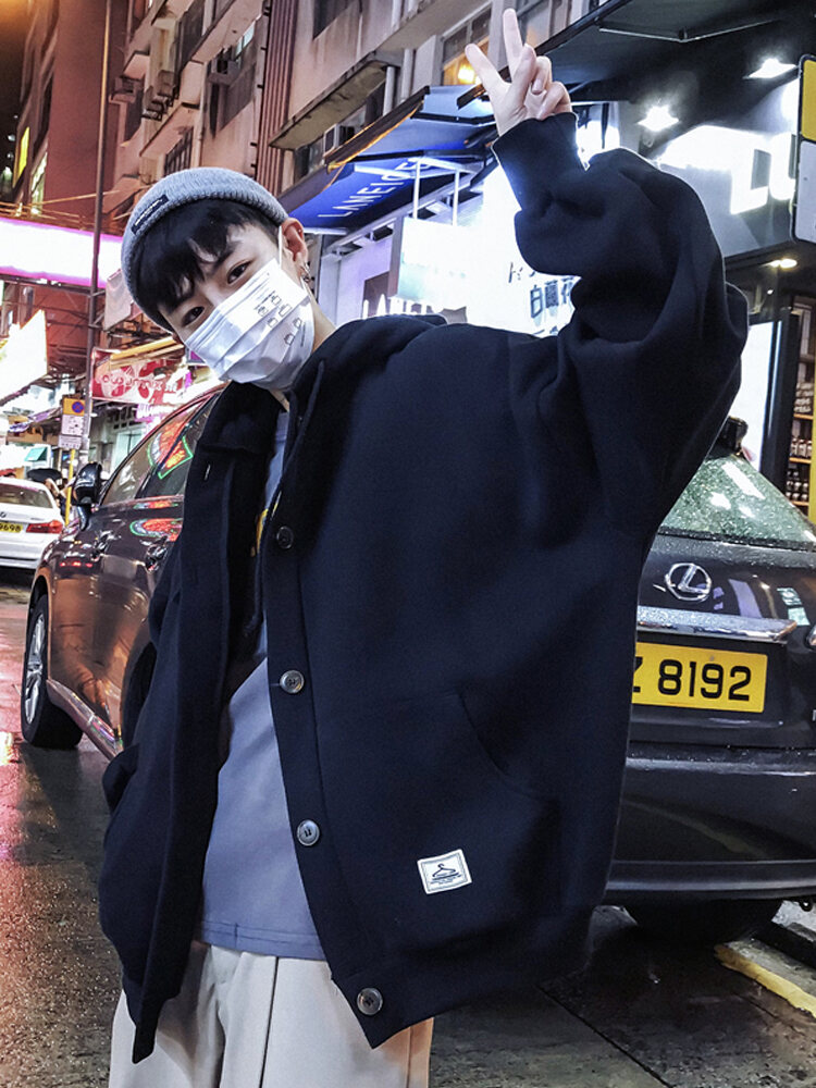 Sweater Men's Fashionable Ins Hong Kong Style Autumn Hooded Loose Fashionable All-Match Baseball Jacket Couple's Autumn Cardigan Clothes